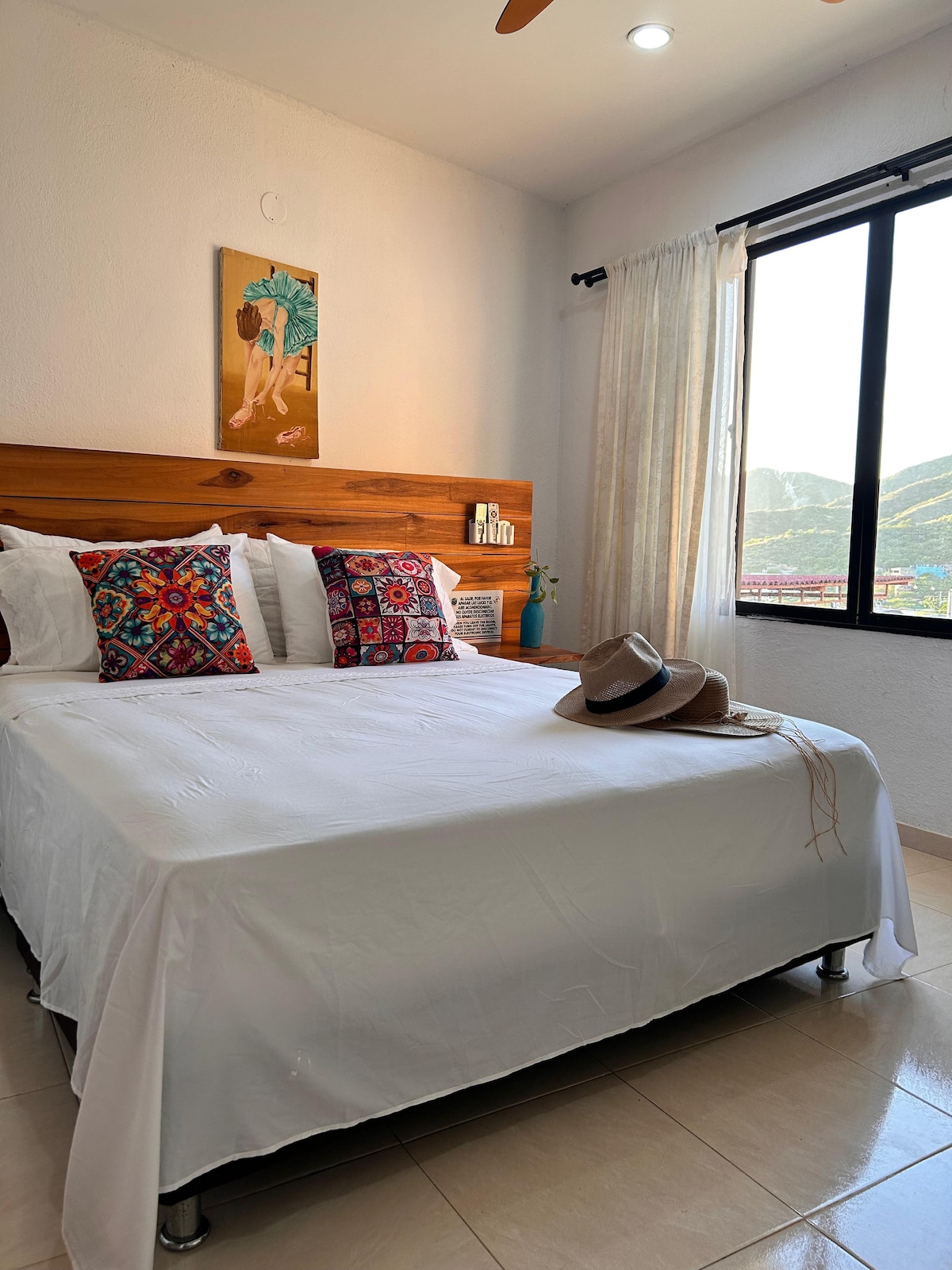 Disfruta de tu cabaña con terraza privada y vista al mar y relájate con la hermosa vista a la bahía de Taganga! Ideal para un descanso en pareja, con una habitación con cama doble, aire acondicionado, smart tv y armario. En la terraza hay una mesa con sillas! , o para trabajar ya que ofrece internet por fibra óptica de 200 MG! Tiene un baño y cocina bien equipada. Ubicada a solo 10 minutos caminando de la playa de Taganga y restaurantes!