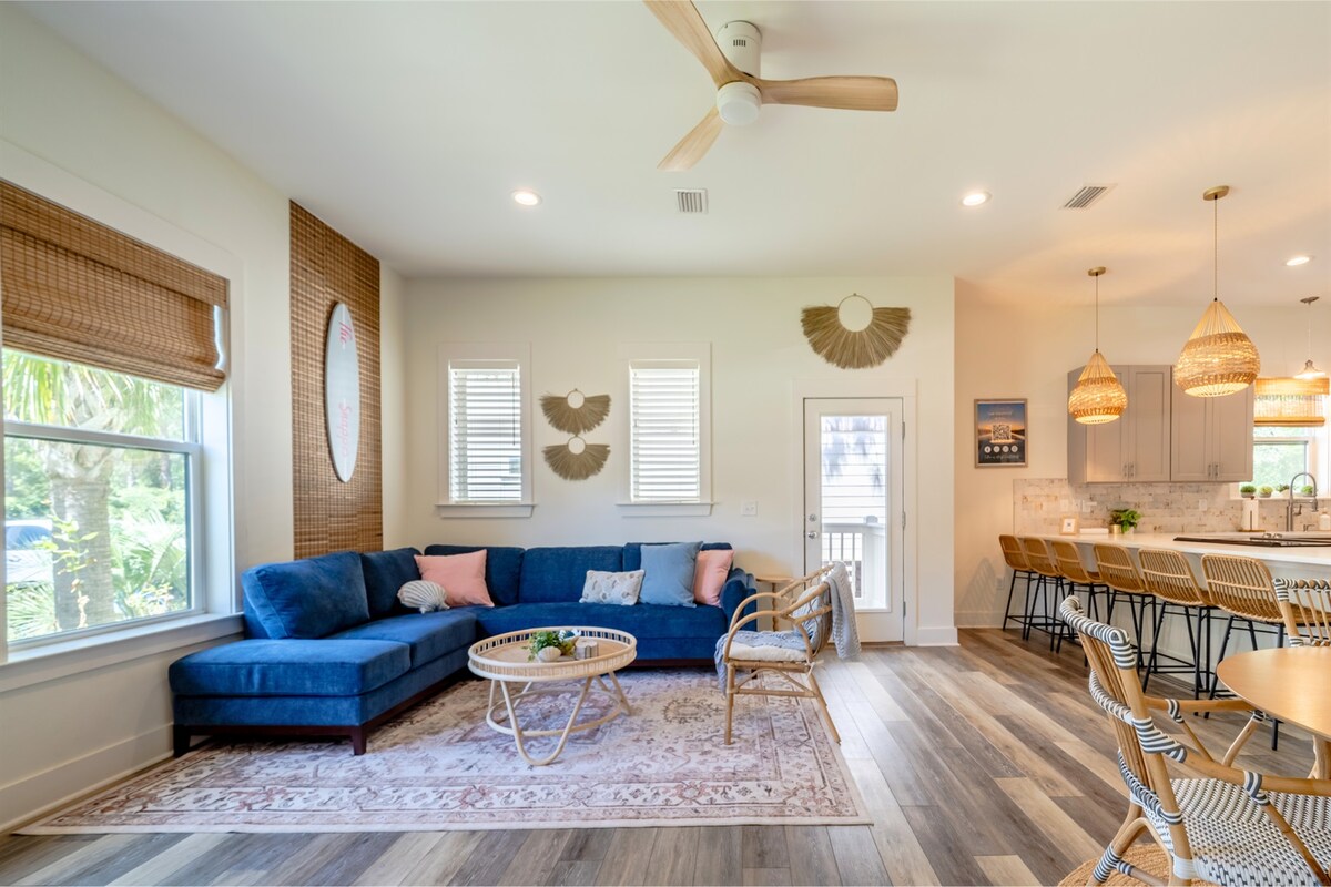 Principales razones para reservar esta casa adosada de lujo 30A: * A pocos minutos a pie del punto de acceso a la playa: directamente al otro lado de 30A. * Bellamente renovado en 2024. * Amplia y tranquila. * 3 balcones. * 2 piscinas, canchas de tenis/pádel, estanques de pesca, zona de barbacoa, etc. * Más de 25 millas de rutas de senderismo a solo unos pasos. * Perfectamente situado cerca de la playa, senderos, tiendas, supermercados, restaurantes y mucho más. * Ideal para familias o personas. * Wifi rápido para teletrabajar o para ver contenido en streaming. * ¡Votado como el AIRBNB favorito de los huéspedes!