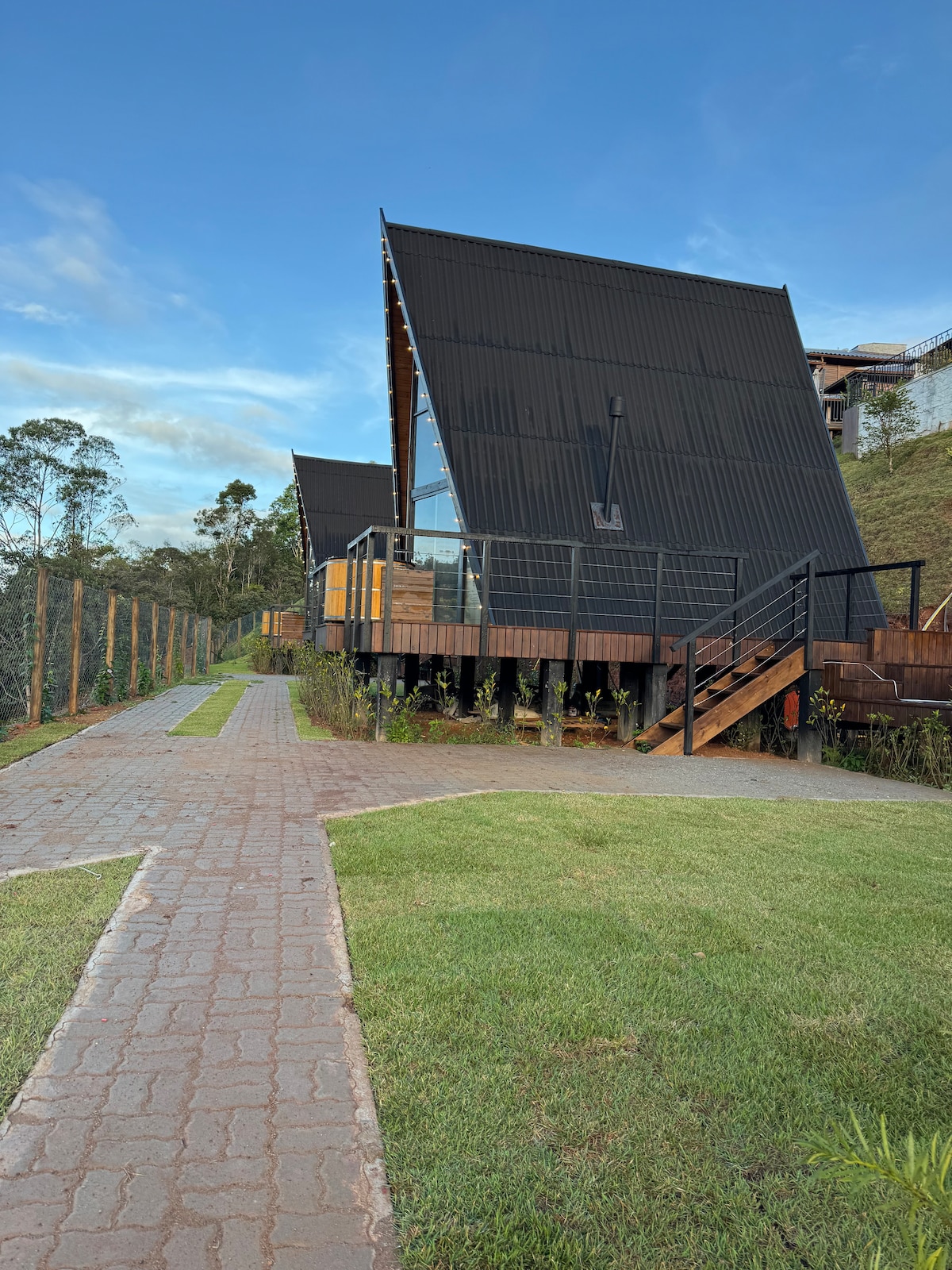 Cabaña escandinava muy espaciosa, cómoda y acogedora. Vc se queda cerca de todo, con asfalto en la puerta. A solo 4 minutos de la calle de ocio y a 1 minuto del circuito de Caravaggio. Todo está diseñado para tu comodidad y bienestar. Terraza de madera con hermosas vistas, pérgola con chimenea al aire libre, balcón para que tomes hermosas fotos, sistema de sonido integrado, cocina completa, internet y te desconectes de la rutina.