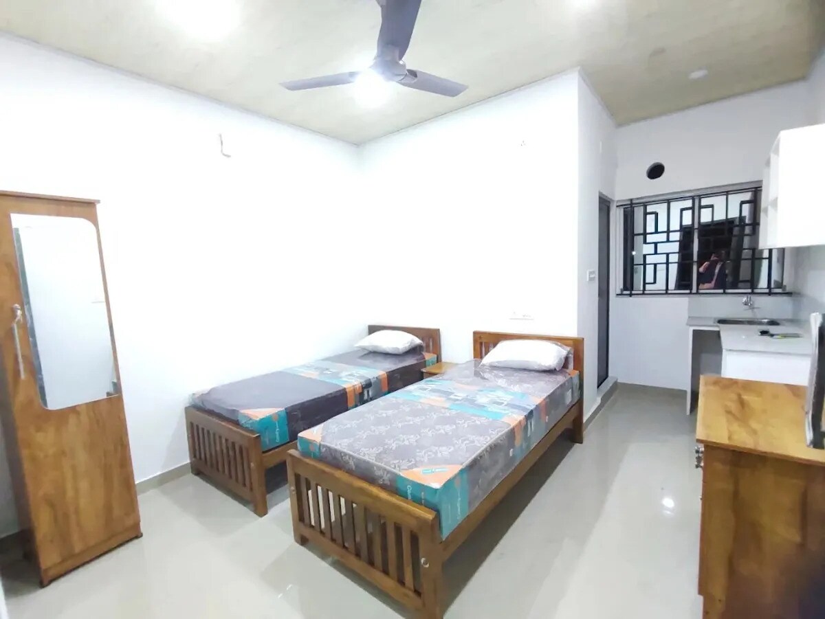Govindnivas se encuentra a solo 1 km del mirador de Pothamedu. Es el primer piso del edificio con 2 dormitorios y un vestíbulo con un solo baño común y balcón con una amplia sala de estar.