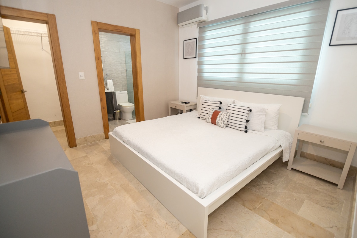Minimalista y de lujo, apartamento ideal para todo tipo de visitas, viajeros, parejas, solteros o incluso negocios, tendrás un espacio dulce y cálido para sentirte como en casa cerca de muchos transportes públicos, centros comerciales, restaurantes, clubes nocturnos, cine, Monumento a los Héroes de La Restauración a 7 minutos, Hospital a 3 minutos, supermercados a 7 minutos. Lugar acuático donde podrías tener excelentes momentos en una comodidad de lujo Un hermoso vestíbulo, piscina, gimnasio y wifi