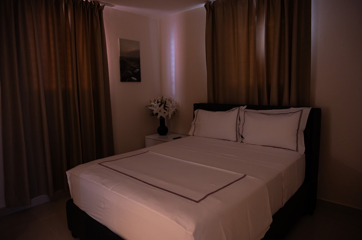 ¡Da la bienvenida a nuestra acogedora habitación! Un espacio renovado a solo 25 minutos del Aeropuerto Internacional del Cibao y a solo 5 minutos del supermercado, El Nacional. Este espacio renovado está convenientemente ubicado cerca de la Avenida 27 de Febrero. Ofrece un bonito balcón y una gran brisa. Ofrece 1 dormitorio con una cama tamaño queen que puede alojar cómodamente a 2 personas. Por supuesto, aire acondicionado.
