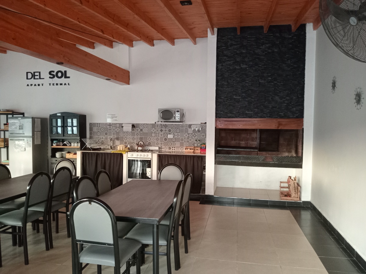 Nuestros departamentos cuentan con toda la comodidad y equipamiento necesario para hacer de tu estadía algo placentero y relajante. Tenemos pozo propio de AGUA TERMAL, por eso puedes usarla dentro del departamento o afuera en las piletas. Estamos a 10 cuadras del centro, en un barrio de casas bajas, por lo que reina la tranquilidad. Nuestro personal está constantemente en el lugar, para ayudarte en lo que necesites.