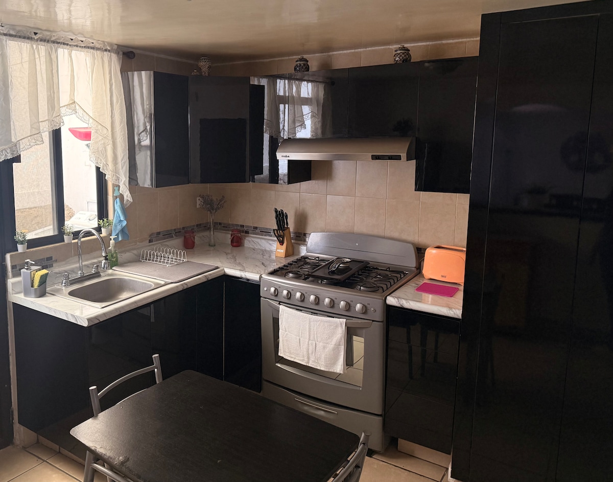Cómoda, amplia e iluminada, ubicada a dos minutos de plaza Explanada, a 2 minutos del periférico y recta a Cholula y a 6 minutos del Centro de Cholula. Cuenta con 3 amplias habitaciones, todas con baño propio completo. Habitación principal con sala privada con pantalla, así como amplio vestidor. Contamos con un espacio de oficina para trabajar. Conexión Wifi de fibra óptica de alta velocidad. Fraccionamiento cerrado. Proporcionamos ropa de cama, toallas, agua para beber, café soluble y azúcar.