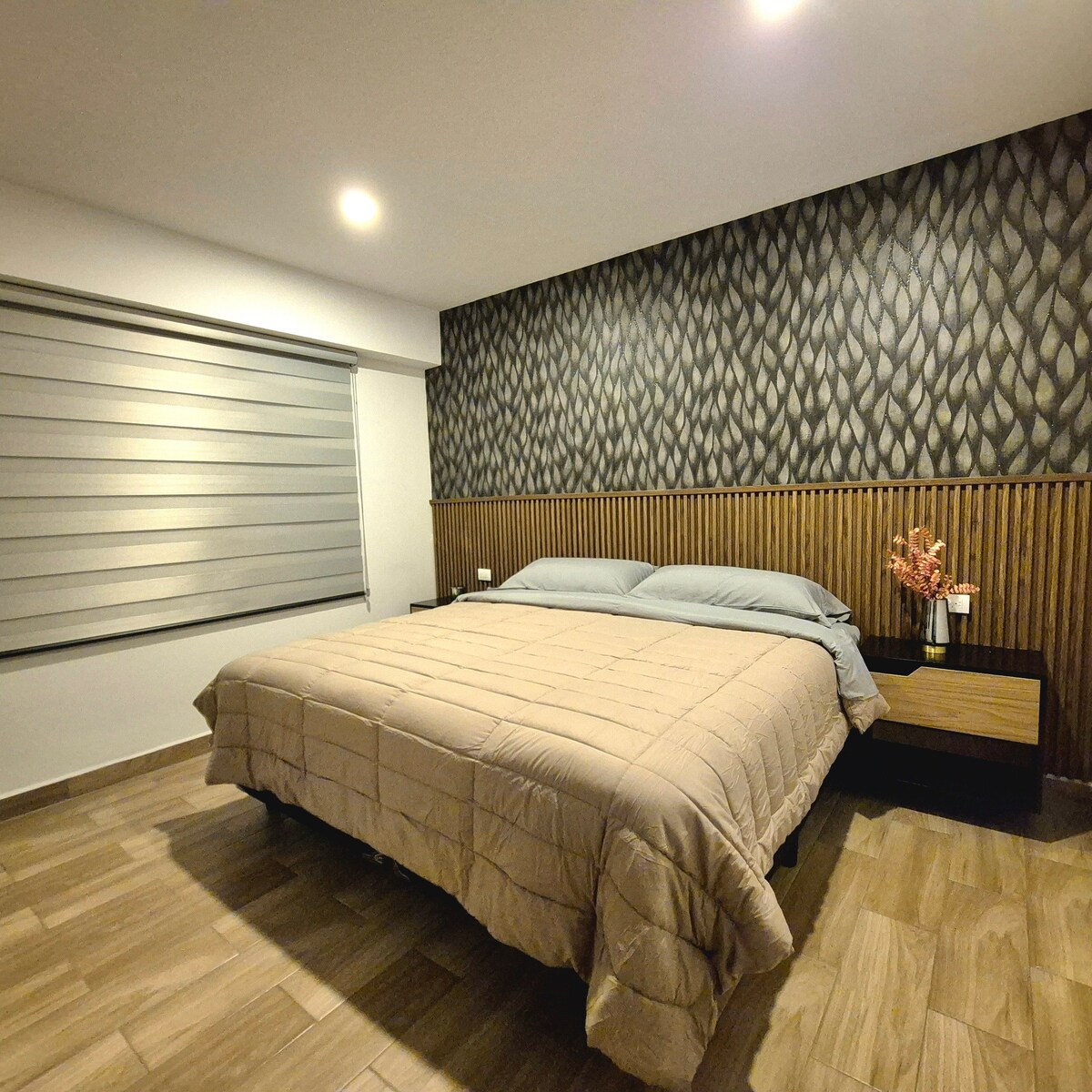 Espacio moderno y luminoso, ubicado en el piso 18, con vistas abiertas a la ciudad. Ideal para parejas, amigos y estancias largas. 3 camas Queen con capacidad para hasta 6 huéspedes. Cocina equipada. Lavadora y secadora gran capacidad Persianas eléctricas y Wi-Fi de alta velocidad para home office GYM 24/7, rooftop y parking en el edificio para 2 autos Pet-friendly con servicio de vigilancia y cámaras de seguridad 24/7 Acceso rápido a Cholula (5 min), Angelópolis (8 min) de distancia