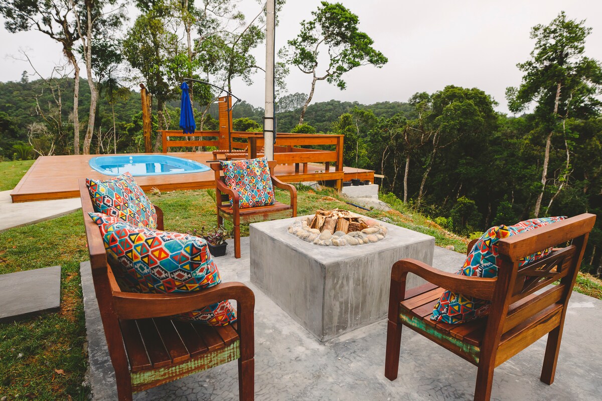 Lindo Chalé com Piscina Aquecida, Quadra de Beach Tennis, Lareira externa em Meio a Mata Nativa. Acorde com o Canto dos Pássaros e desfrute deste refúgio maravilhoso com conforto e tranquilidade. Super aconchegante e cheia de estilo. Especialmente pensada aos Amantes da Natureza! Para quem deseja ter uma conexão real e deixar de lado a vida cotidiana. Piscina Aquecida o Ano Todo, Internet Rápida, Ar Condicionado. Em Águas Mornas à 50 minutos de Florianópolis. @alamedadasbromelias