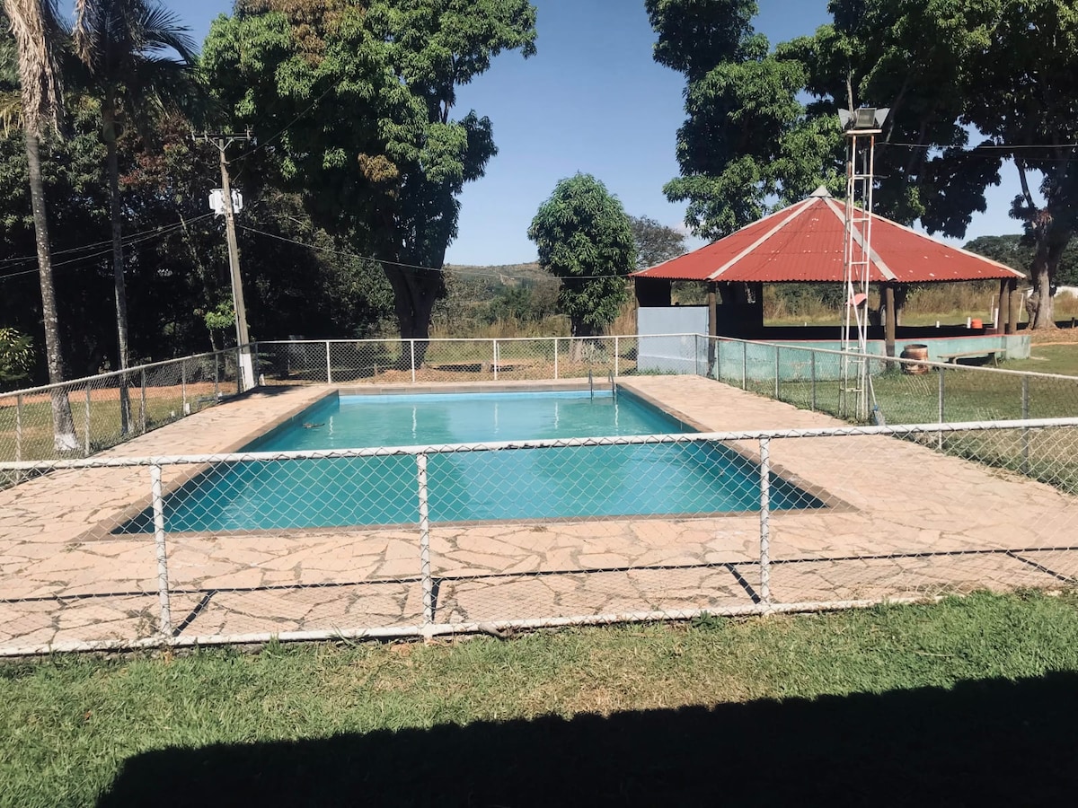 Refugio único a sólo 90 km de Brasilia y 120 km de Goiânia, con fácil acceso (incluso para coches bajos).Son 3 hectáreas de naturaleza, a orillas del lago Corumbá IV, con piscina privada, río dentro de la propiedad y un mirador con cabaña en el árbol.Alojamiento: 5 habitaciones (4 suites + cabaña en el árbol), 5 baños, zona de camping.Ocio: barbacoa, estufa de leña, cocina de 6 fuegos, nevera, congelador, fuente, piscina y amplia zona verde.Perfecto para aquellos que buscan tranquilidad.