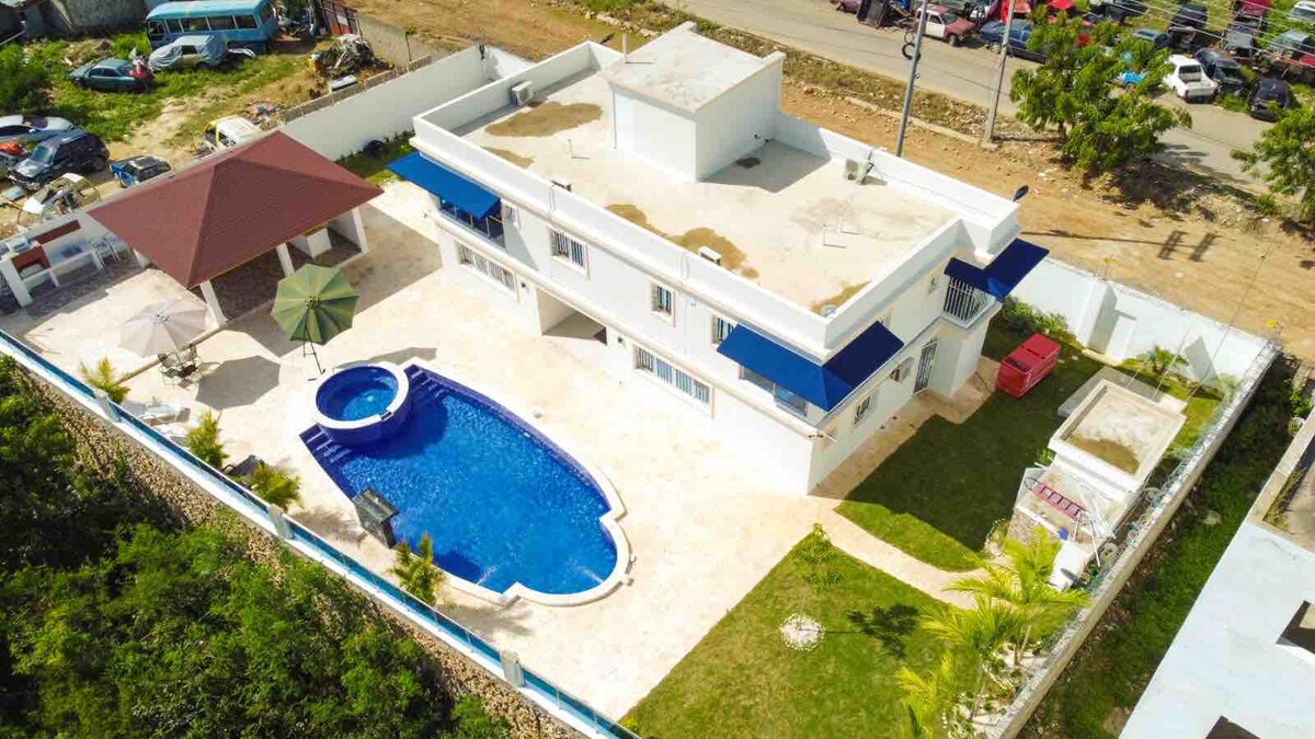 Discover the ultimate party getaway at Villa Fiesta Oasis! This luxurious 4-bedroom villa offers everything you need for an unforgettable stay: a sparkling pool, a relaxing jacuzzi, and ample space for entertaining. Located just minutes from the airport, convenience and comfort come together in this stunning retreat. Whether you're hosting a celebration or simply seeking a relaxing escape, House of Cards (Casa de Papel) is your perfect destination. Experience the best of Santo Domingo!