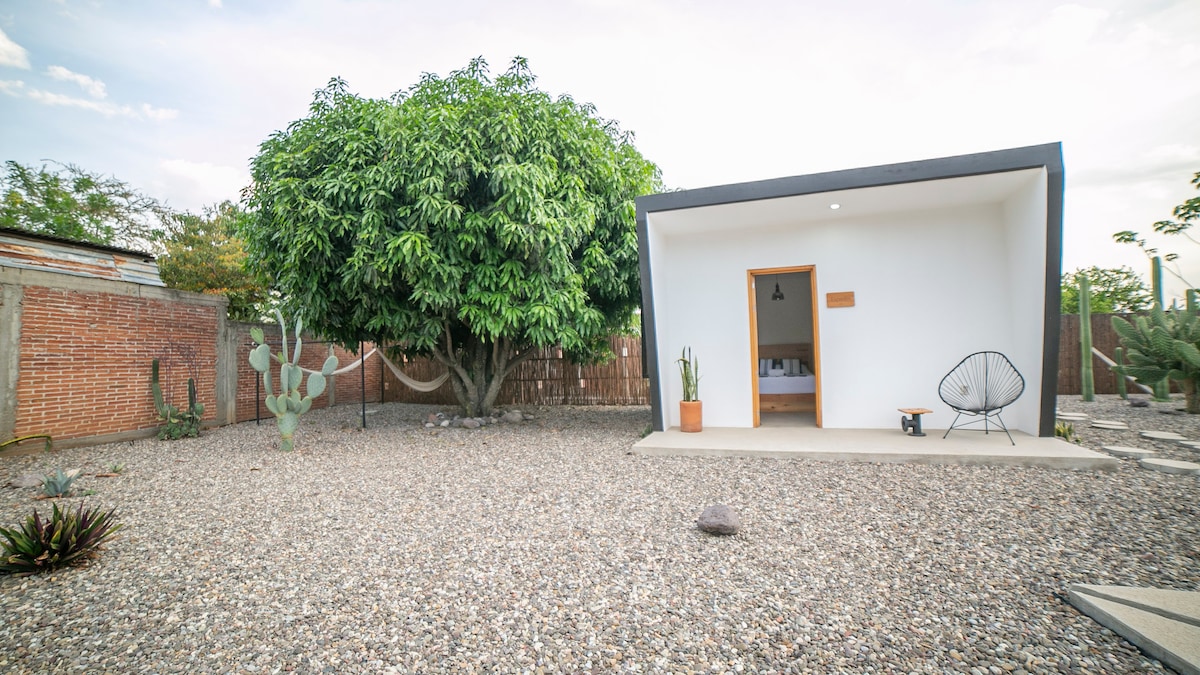 Alojamiento pet friendly para máx 3 personas, en un ambiente campestre, rodeado de árboles frutales. Cuenta con patio privado para mascotas y estacionamiento techado. A 0.5 km de deportivo Oaxaca. Ubicado cerca de la salida al Tule, en una población de usos y costumbres. A menos de 800 mt hay tiendas, tortillería, panadería y fruterías. El zócalo de Oaxaca está a 7 km de distancia (aprox 20 minutos en coche). El Tule está a 4 km de distancia (aprox 7 minutos en coche).