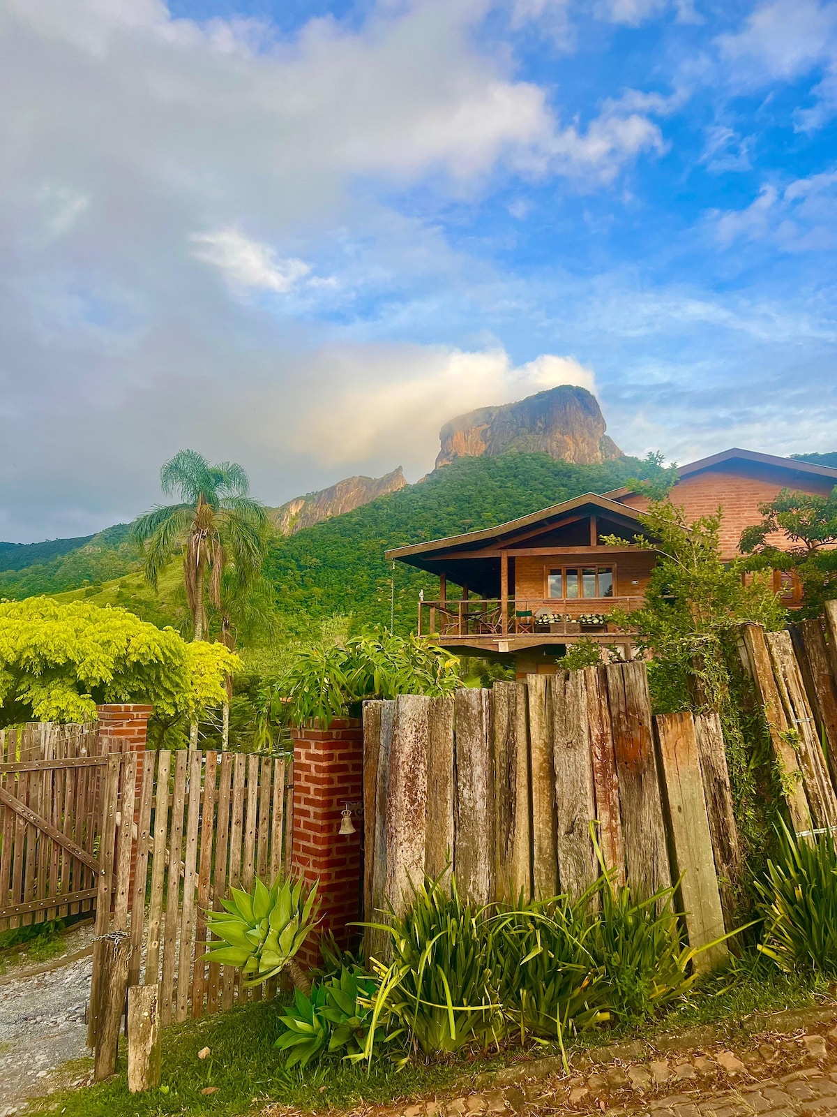 A sustainable small house with an organic garden, spring water, solar energy, composting, and a fenced yard where pets can roam free. We offer yoga and meditation classes, plus a peaceful space for remote work. Bamboo-fenced for privacy, the day ends in the jacuzzi—with a view that inspires presence and gratitude. A stay for those who believe in a greener, and more conscious world. The view of Pedra is from the Jacuzzi and the Yoga Shala.