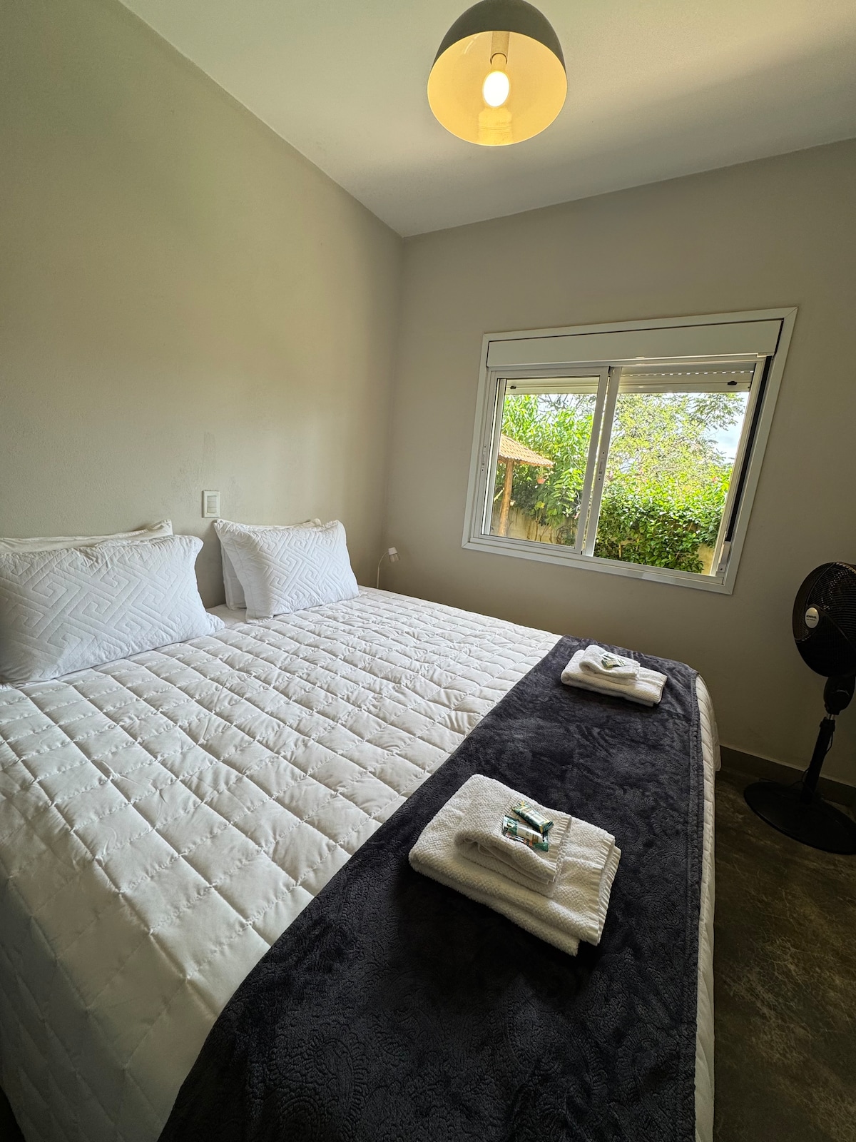 Chalé Ayrá es un refugio espacioso, creado para aquellos que buscan un descanso, inspiración y un soplo de naturaleza. Una pequeña casa rodeada por la fuerza del cerrado, donde el tiempo se ralentiza y los sentidos se despiertan. Ayrá ofrece una experiencia diseñada con detalles en mente: sábanas de 1000 hilos, aire acondicionado, bañera de inmersión, hamaca, chimenea, horno, bar completo. SPA, sauna y la piscina natural ozonizada, acceso compartido dentro de Villa Aruanda, completan el cuidado del cuerpo y la mente.