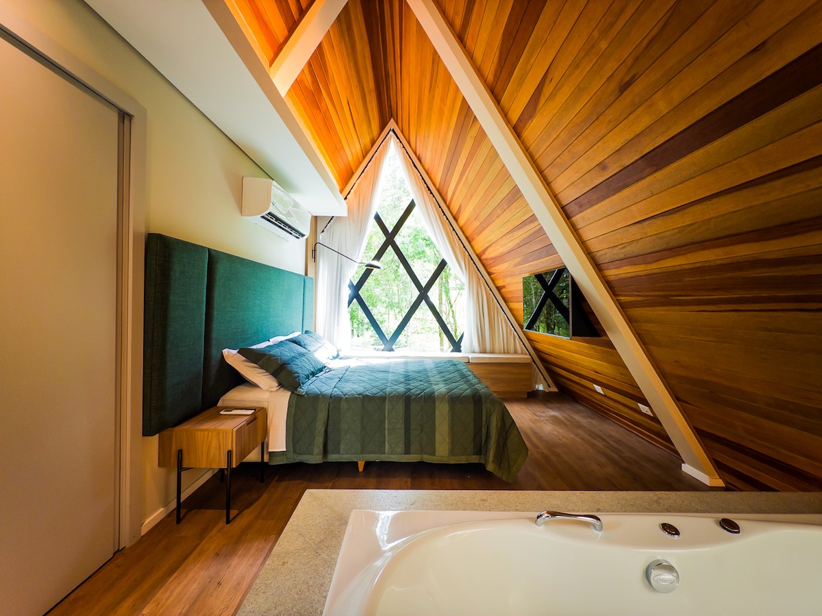 Cabaña de alta gama ubicada en la zona rural de São José dos Pinhais en una propiedad segura, rodeada de naturaleza increíble. * Se incluye una cesta de desayuno proporcional al número de noches, cesta disponible a la llegada. * Relájate en nuestro hidromasaje interno. * Chimenea * Aire acondicionado * Fogata * Cocina totalmente equipada (refrigerador, sándwichera, estufa, horno, microondas, cafetera, ollas y utensilios). * TV inteligente. * Internet. * Calefacción a gas. * Local para 2 personas (+18)