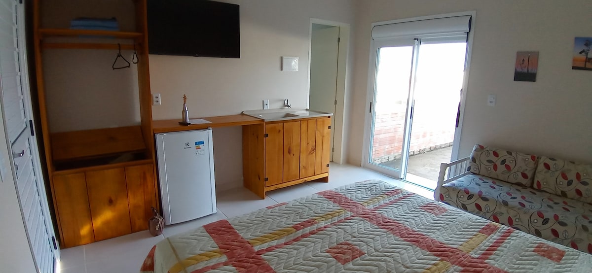 Apartamento a estrenar con excelente ubicación, a 7 cuadras de la playa, a 3 del supermercado y farmacia Jepsen, a 1 cuadra del distribuidor de bebidas Che Gela, a media cuadra de la brigada militar y la pizzería Bambinos. El departamento tiene aire acondicionado en el dormitorio doble, TV por cable, wifi, almohadas, ventiladores, barbacoa, kit de barbacoa y otros utensilios de cocina. Existe la posibilidad de un colchón extra, si lo necesitas. Cualquier pregunta, estaremos a tu disposición. Lugar tranquilo para descansar.