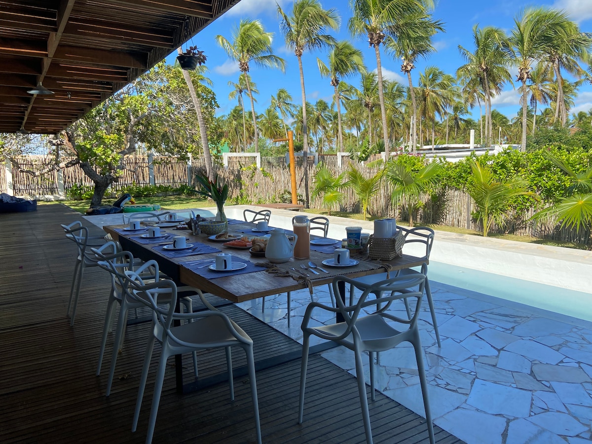 CASA MÓDICO CASA FRENTE A LA PLAYA, SEGURA y TRANQUILA. ¡PERFECTO para FAMILIARES, AMIGOS y AMANTES de las COMETAS! Enfrente del mar, en el Kite Point de São Miguel do Gostoso - Capacidad para 8 PERSONAS con comodidad. - 4 HABITACIONES, todas las suites con baño. - Condominio en todas las habitaciones. - COCINA COMPLETA -DININING ROOM - ÁREA DE VERANO CON MESA -BREAKFAST Y LIMPIEZA DE HABITACIONES INCLUIDA -DECK de 80m2 frente a la casa - LAVARROPAS. - PARCELA PRIVADA frente al MAR. - ACCESO PRIVADO
