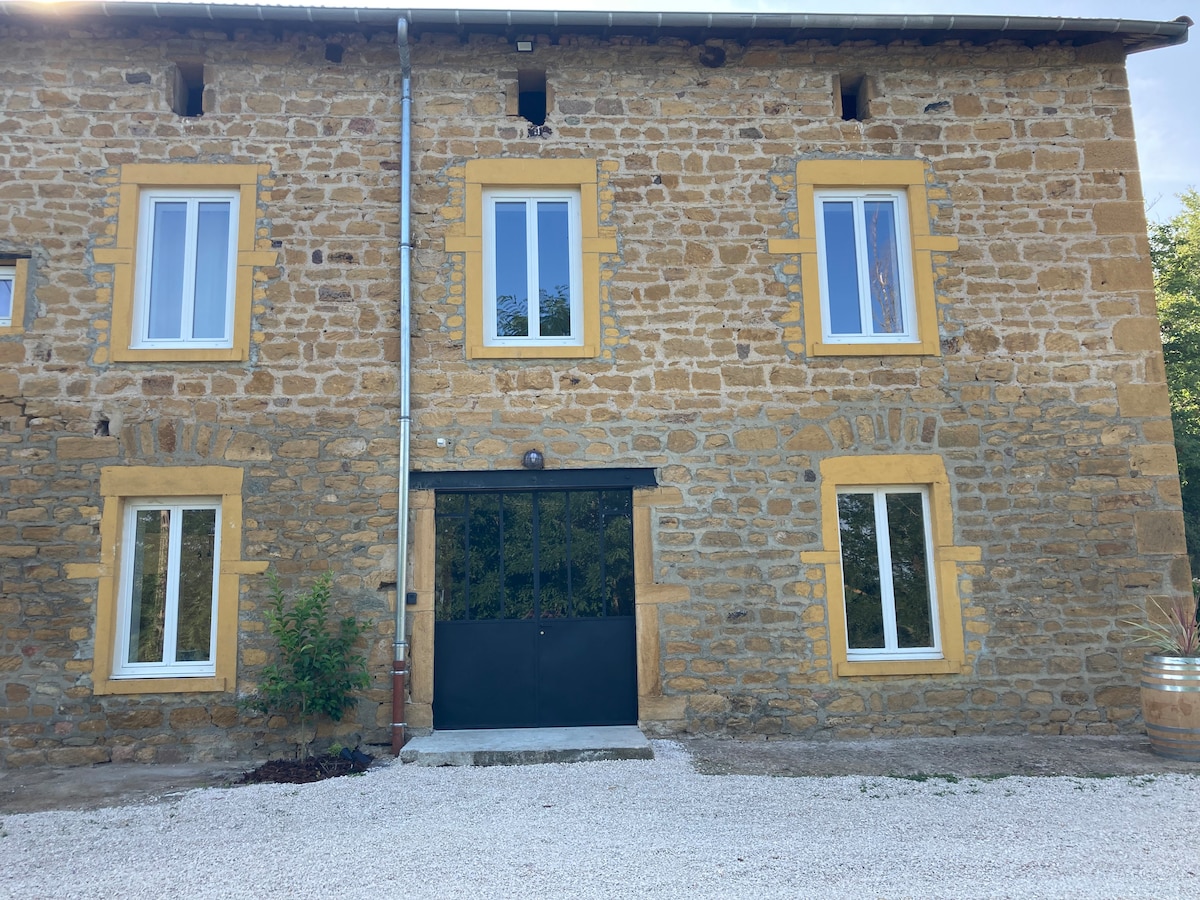 Disfrute de una agradable estancia tranquila en un estudio nuevo en el campo, espacioso, con entrada independiente, situado cerca de la salida A89 (5 minutos), la salida A6 (15 minutos) y el tren TER (a 3 km). - Cocina americana totalmente equipada: nevera, lavavajillas, microondas, placas de inducción, cafetera, hervidor de agua, vajilla - Una cama doble y un sofá cama - Cuarto de baño con ducha italiana y WC privados - 2 televisores y un proyector de vídeo (muchas películas) - Muebles de jardín privado