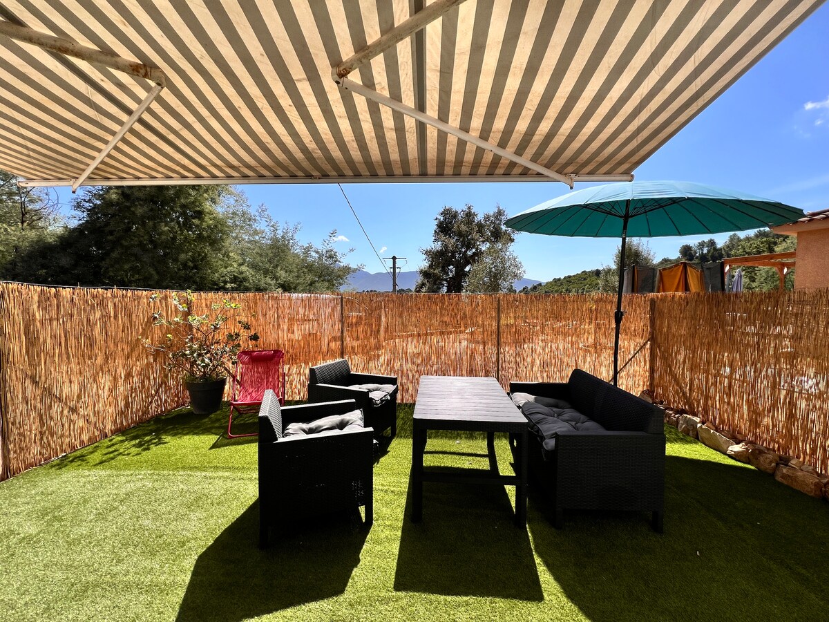 Situado cerca de la nacional Plaine de Péri lugar llamado confina (a 15 km de AJACCIO) Estudio con aire acondicionado independiente con su lugar de estacionamiento privado y seguro con puerta automática. Dispone de una gran terraza a la sombra (pérgola bioclimática) con muebles y plancha de gas y una zona de relajación con césped equipada ( tumbonas).Glacière y paddle también están a su disposición . tel: cero seis - doce- cincuenta cuatro - cuarenta ocho - veintiséis seis