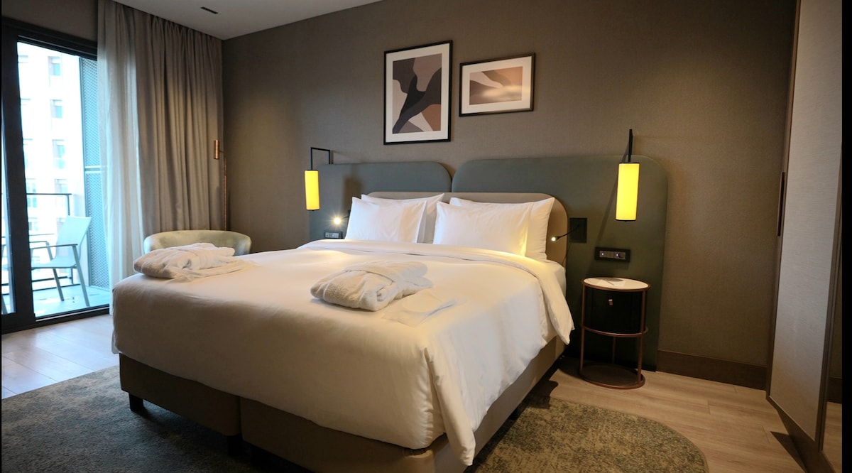 🌟 Welcome to this modern and stylish 2 Bedroom Apartment located in Maslak Sarıyer, within the prestigious Maslak 1453 Complex. The apartment offers a spacious living area, a fully equipped kitchen, and access to on-site facilities including a gym, sauna, and steam room. 🧹 Daily complimentary housekeeping service is included for your comfort. ✨ We look forward to hosting you and wish you a pleasant stay!
