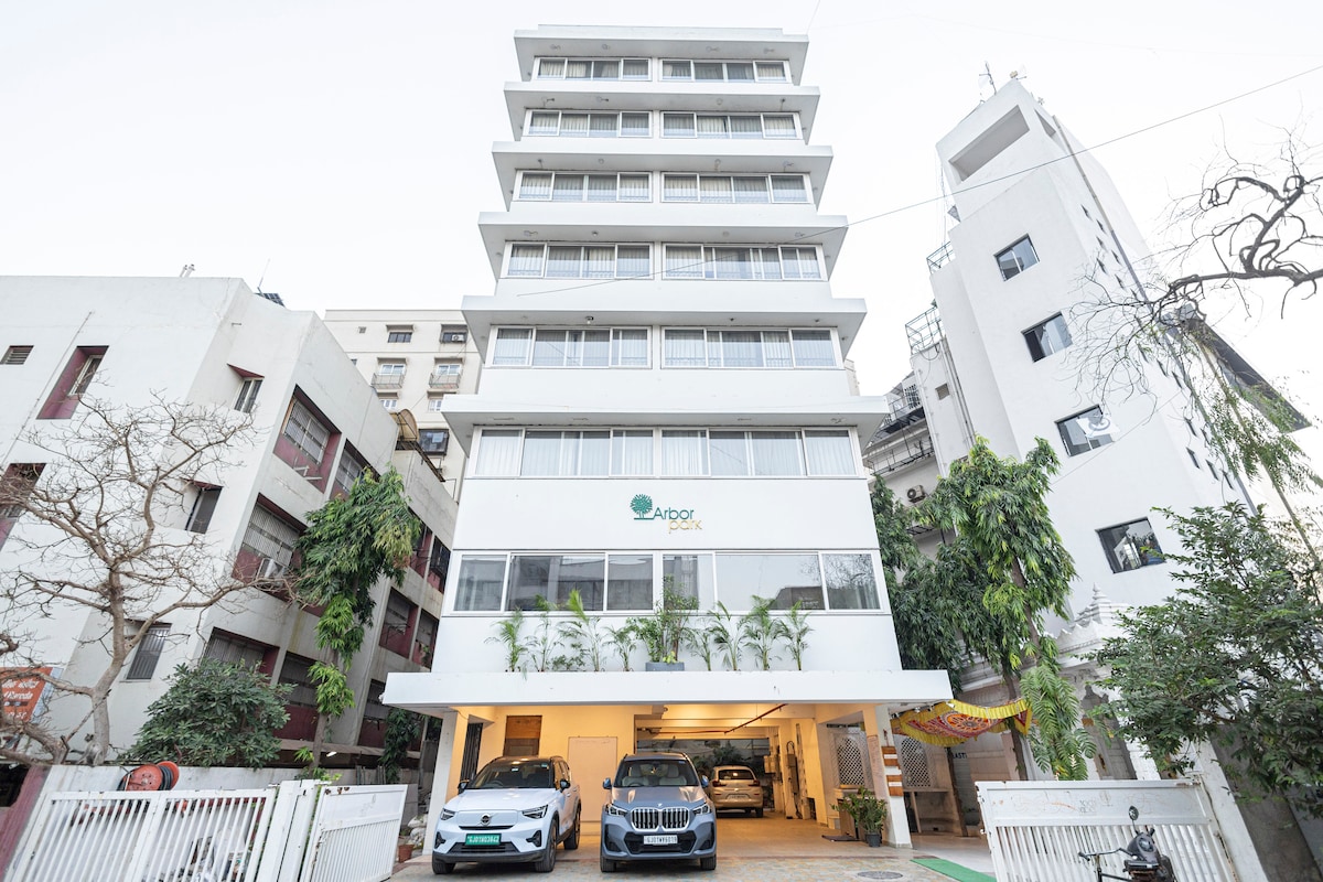 ¡Te damos la bienvenida a Heritage City, Ahmedabad! NUEVO apartamento familiar espacioso en Ambawadi, zona de Nehrunagar. Todo el apartamento será tuyo. Detalles: Tamaño del apartamento: 380 pies cuadrados, 35 metros cuadrados. - Dormitorio principal con cama tamaño king, armario, baño adjunto, ducha de agua caliente, aire acondicionado. - Otro sofá en la sala de estar con cocina pequeña. - Mobiliario IKEA, wifi GRATUITO, aire acondicionado, agua embotellada potable. Ascensor. Lo sentimos: no se permite fumar ni mascotas (servicio de lavandería adicional en el mismo edificio).
