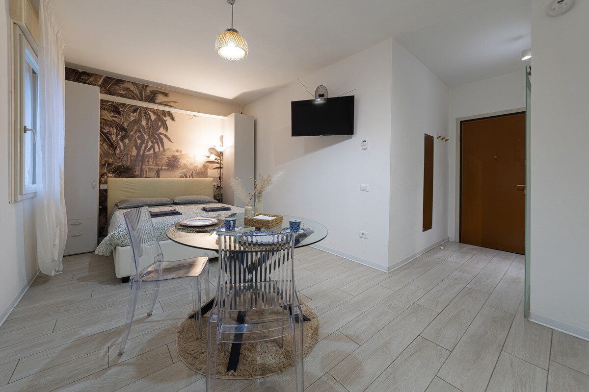 Welcome to your cozy studio apartment at the foot of Padova's city center. Featuring a living area, fully-equipped kitchen, double bedroom, and modern bathroom, it offers all the necessary amenities: Wi-Fi, coffee maker, TV, and air conditioning. Its strategic location makes it perfect for exploring the city and surrounding areas, with its proximity to the bus stop, Padova's attractions, and the supermarket.