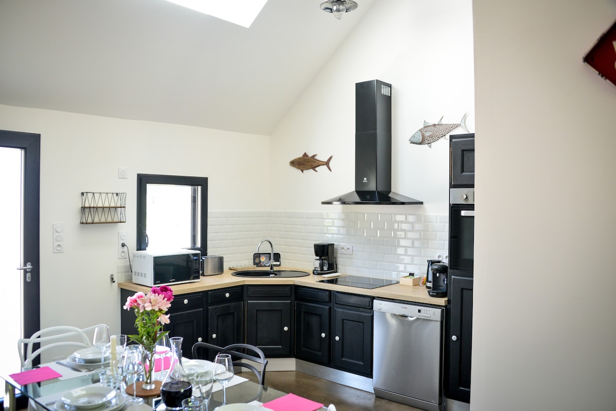 La casa en bahía-bosque-playa. ¡Todo está a 5 minutos! La queríamos acogedora, y funcional. ¡Aquí encontrará todas las comodidades y equipamientos necesarios, por supuesto! El gran jardín le ofrecerá tranquilidad y relajación. Podrá compartir sus comidas si lo desea, alrededor de la mesa de madera. También tendrá la oportunidad de ir a la playa para disfrutar de la arena blanca y nadar en solo 7 minutos. ¡El Mont Saint Michel está a 40 minutos!