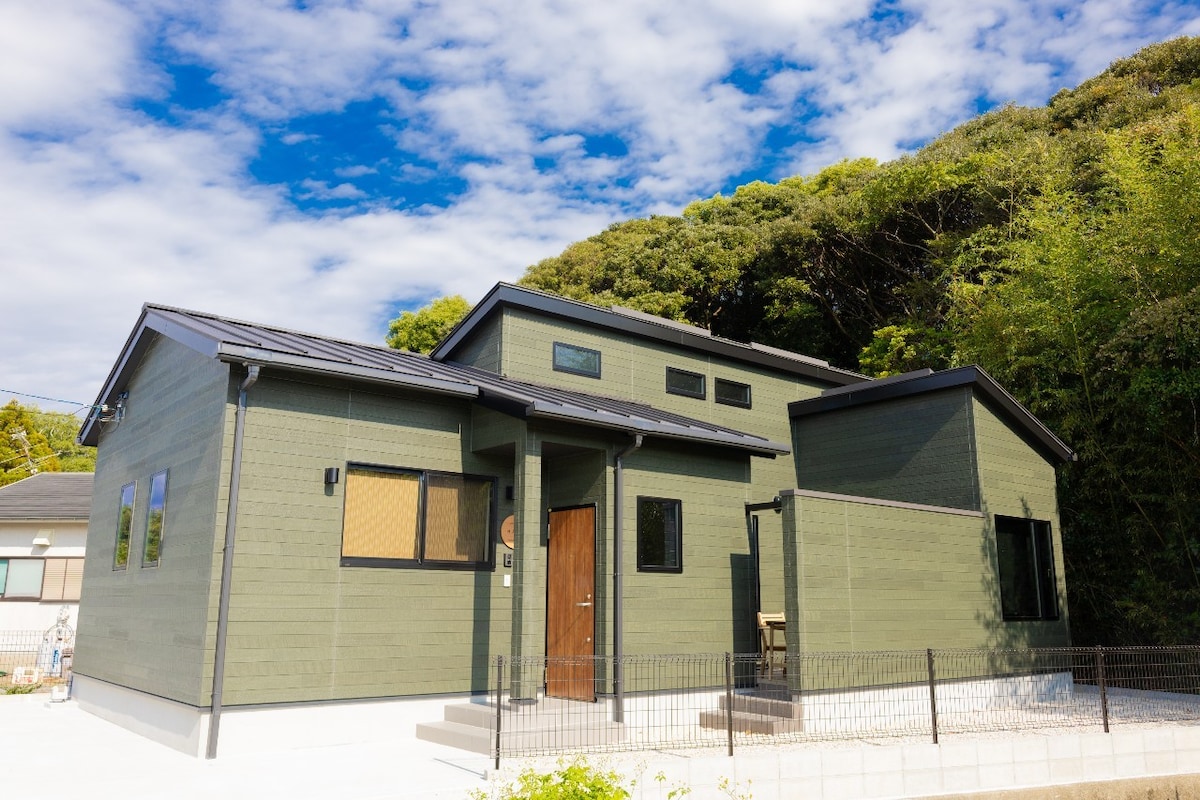 Bienvenido a tu base de aventuras secreta, "Majo no Kyuujitsu", ubicado en la hermosa costa de Nagasaki. ¿Te gustaría experimentar una mañana especial despertando con el sonido de las olas, como una escena de una película? Te esperan unas vacaciones de lujo, donde podrás olvidarte de la vida cotidiana y unirte al mar. El interior de la villa está unificado con muebles especialmente ordenados de Bali, creando un espacio exótico y de alta calidad que se mezcla naturalmente con sus alrededores.Ofreceremos una estadía cómoda que te hará sentir extraordinario con solo estar allí. El espacioso interior puede alojar hasta 7 personas.La terraza de madera es un lugar ideal para hacer una barbacoa con amigos y ver las estrellas, o simplemente relajarse con la brisa marina.Está totalmente equipado con una cómoda sala de estar y comedor, cocina funcional, dormitorio relajante y wifi gratuito. Disfruta de una lujosa experiencia rodeada del mar y la naturaleza, solo disponible durante las "vacaciones de la bruja". Los tiempos mágicos seguramente te están esperando.
