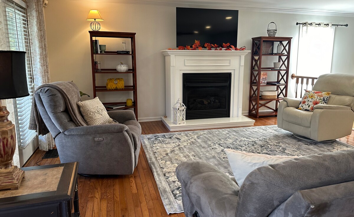 Newly remodeled 1950s Farmhouse, Complete with 3 bedrooms & 2 full bath. The perfect getaway from the City that comfortably sleeps 5 guest. Amazing view from the large covered back porch with access to 6 acres. Large tile shower in the master bedroom & deep soaking tub in the guest bath. All new appliances & access to washer/dryer. Enjoy all seasons on the covered porch with outdoor furniture and TV. Only 5 min from Howe Farms Venue & 22 min from Chatt airport. House does sit on a busy highway!
