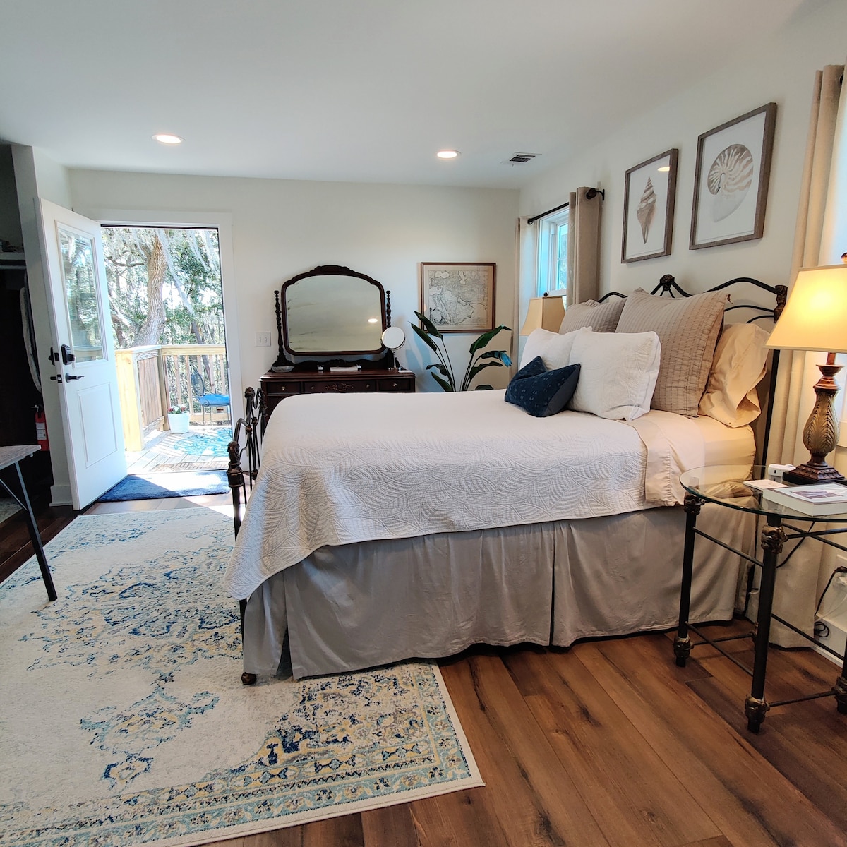 Springtide Suite es un espacioso apartamento (102 metros cuadrados) que ocupa la planta baja de nuestra casa ubicada justo fuera de los límites de la ciudad, a 17 millas de Tybee y a 15-20 minutos del distrito histórico del centro. Tiene capacidad para seis personas con 1 dormitorio oficial con 2 camas individuales. Otras 2 camas individuales y una litera se encuentran en una zona común más abierta. Cocina totalmente equipada (sin lavavajillas), baño grande (solo ducha) que incluye lavandería. 3 plazas de aparcamiento justo frente al Airbnb!