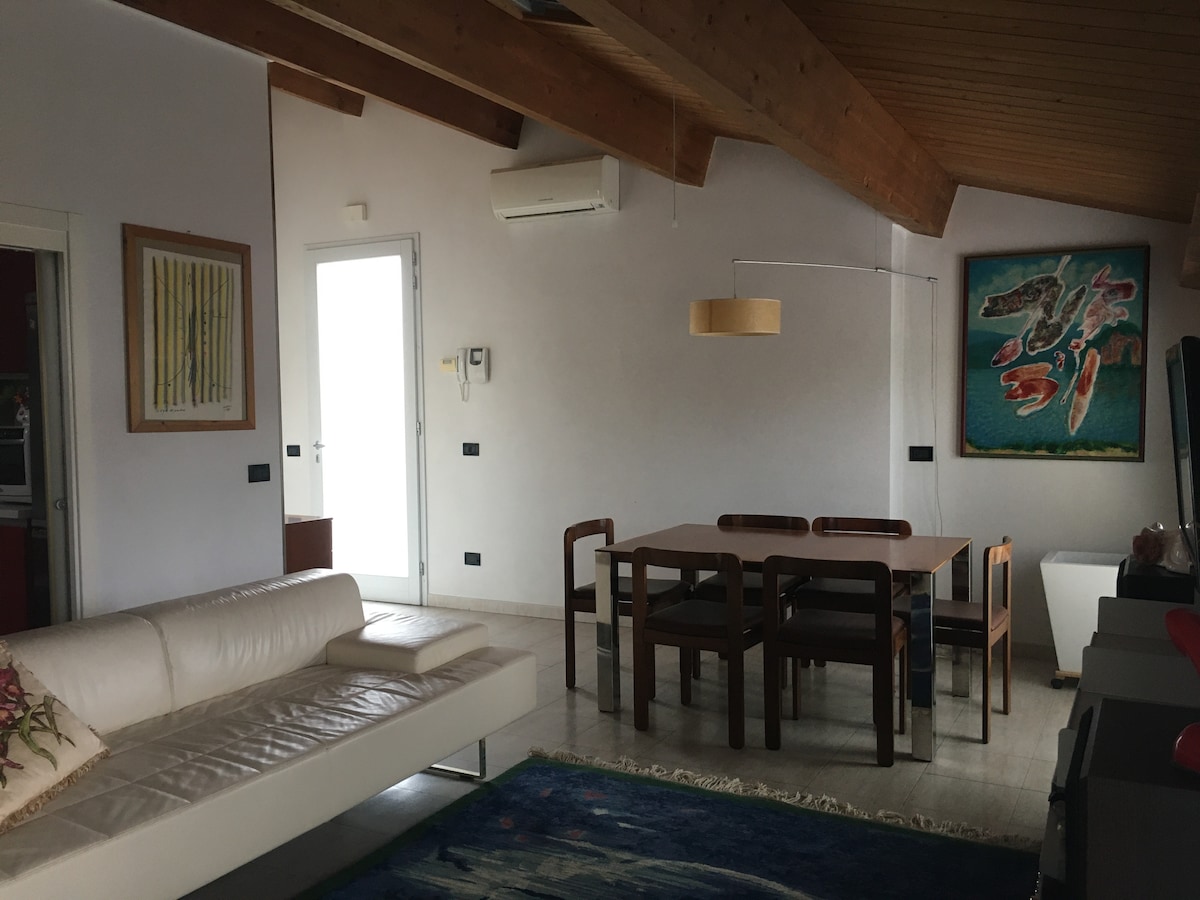 Appartamento sito al secondo piano di una palazzina, a cinque minuti a piedi dalla piazza principale e adiacente al centro commerciale; dove gli ospiti potranno usufruire dei servizi di lavanderia, bar, edicola, parrucchiere, ristorante pizzeria e supermercato. Stazione dei treni ad km. 1. Garage privato coperto, presenza di un balcone
