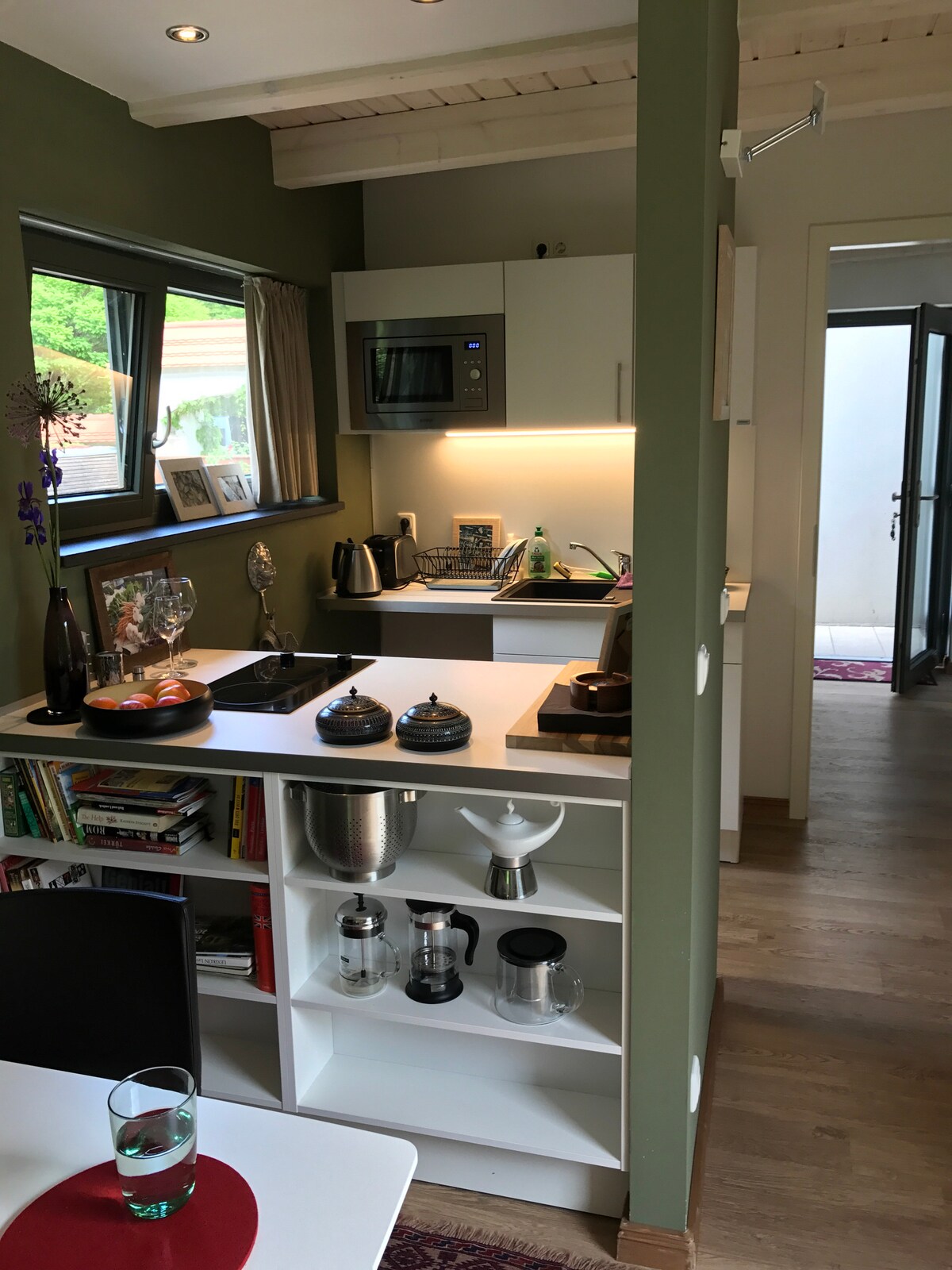 El apartamento es nuevo y está equipado con materiales de alta calidad. Está al lado de mi casa y tiene su propia entrada. Así que no os molestarán. La ventana panorámica tiene una vista muy bonita del jardín, que podéis utilizar. Cómodo y tranquilo. Restaurantes y supermercados a 5 minutos.