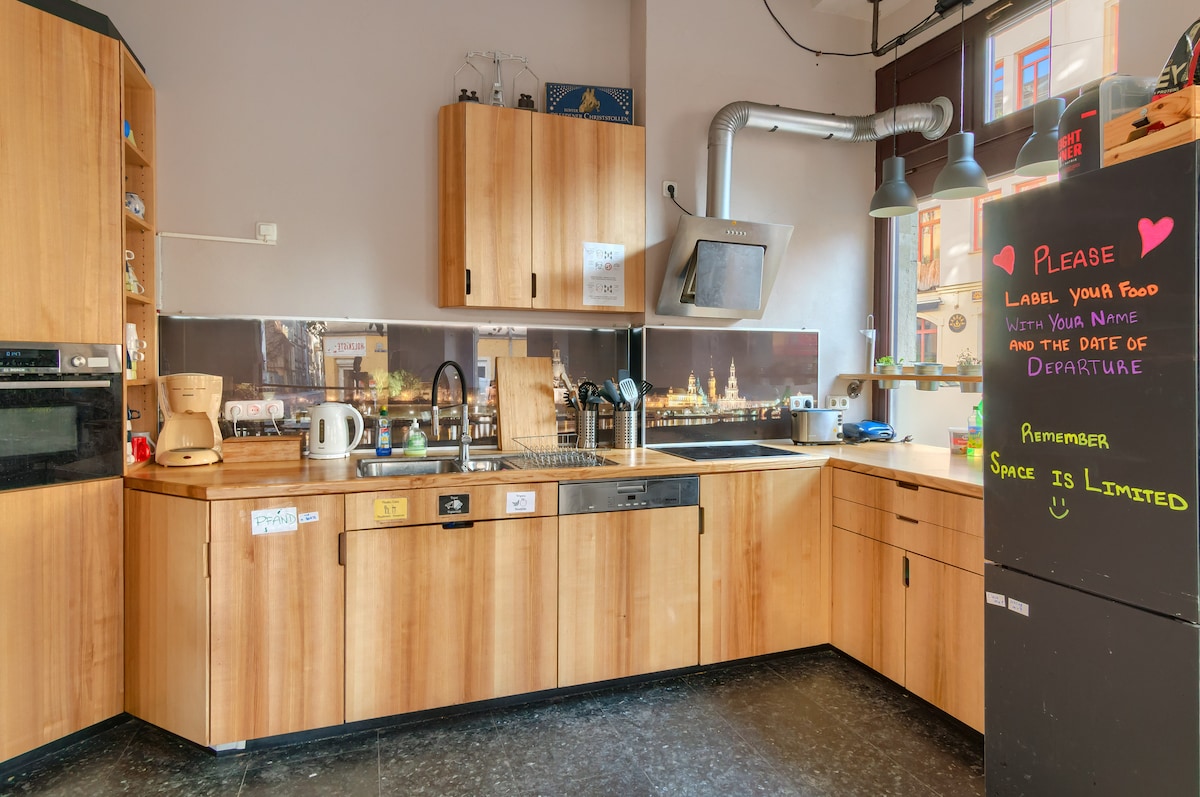 Our single room is private rooms with a creative individual design and a window facing the quiet backyard. The bathroom is shared and located in the hallway. Check out the photos to get an impression.