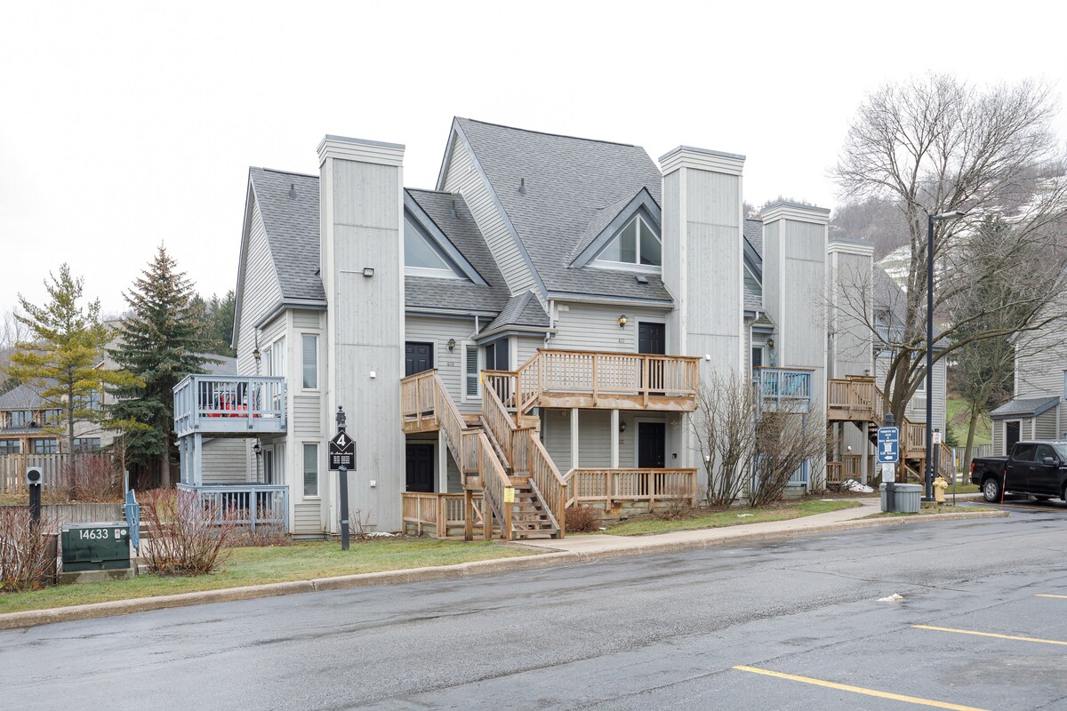 ¡Bienvenido a nuestra unidad de estudio en la ladera de la montaña North Creek Resort! *Cama tamaño king. *sofá cama: colchón de espuma viscoelástica de doble tamaño. * TV INTELIGENTE, Rogers Ignite WIFI y TV de alta velocidad. *Utensilios de cocina, utensilios y Keurig *recién pintado * baño remodelado Características de la propiedad: * Servicio de traslado * Jacuzzi durante todo el año * Piscina (cerrada para la temporada de invierno, para reabrir en primavera de 2026). *Canchas de tenis * Esquí o senderismo de entrada/salida a North Hill (rutas de senderismo, esquí diurno intermedio-avanzado)