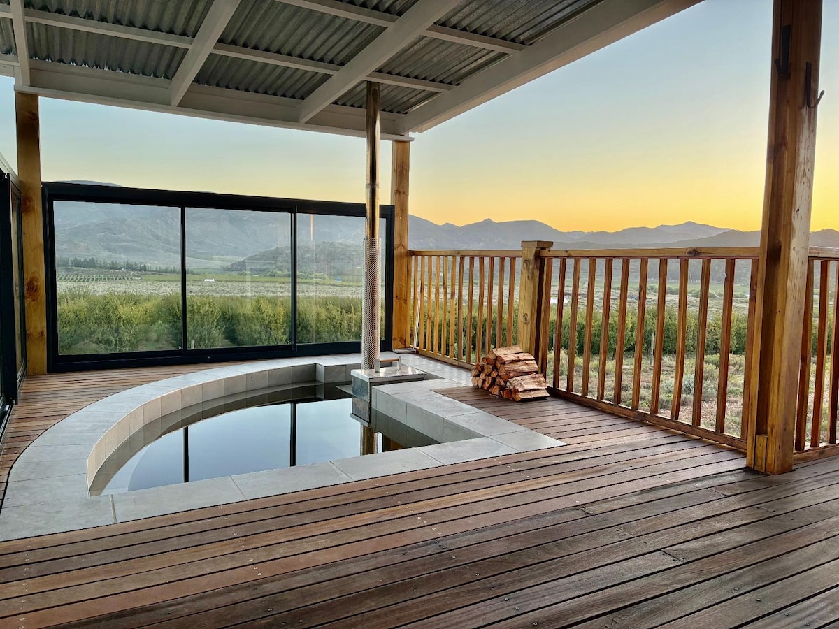 La casa rural Sundowner se ha ubicado para ofrecer las mejores vistas del atardecer en la granja. El eland y el springbok que pasan completan la escena mientras te sientas en un jacuzzi de leña, con las montañas detrás de ti. A una hora y media de Ciudad del Cabo, cerca del valle de Nuy, la granja Amandalia alberga la cervecería Saggy Stone, así como estas cabañas de madera con estructura de A únicas.