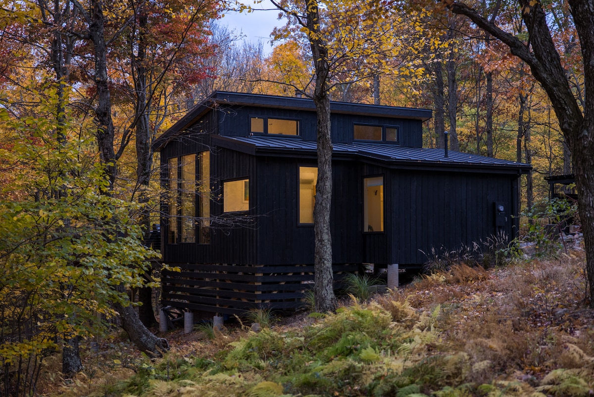 ¡La pequeña cabaña negra es todo lo que has estado soñando para tu acogedora escapada a la montaña! Disfruta de unas vistas panorámicas, acurrúcate junto a la chimenea o prepara s'mores en la hoguera. Prepara una comida gourmet en la pequeña pero bien equipada cocina. Tres comedores ofrecen opciones para la cena o una oficina remota, gracias al wifi. Prueba el senderismo, el yoga y el mercado de agricultores cercanos. ¡Somos un poco rústicos (sin televisión, aire acondicionado, microondas, lavandería o lavavajillas) y muy elegantes!