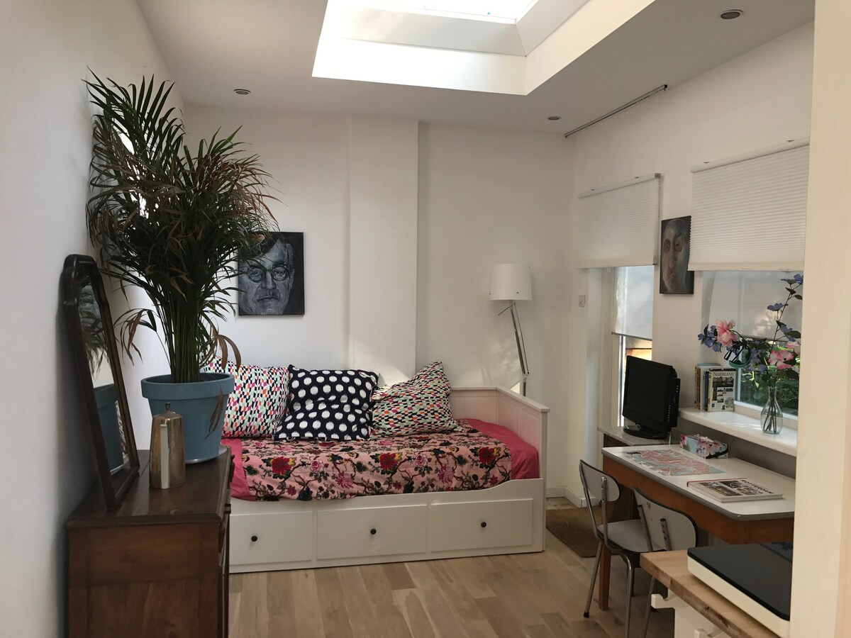 Mi estudio recién renovado es el lugar perfecto con todas las instalaciones que necesitas. Un ambiente luminoso, natural y bien equilibrado hace de este lugar una buena estancia por negocios o placer. El estudio es completo privado y tiene su propia entrada. Es el lugar perfecto para explorar Róterdam y Schiedam. Estoy bien informado sobre los problemas prácticos y los mejores lugares para visitar en las ciudades de (alrededores) y, como gran anfitrión, me complace contártelo.