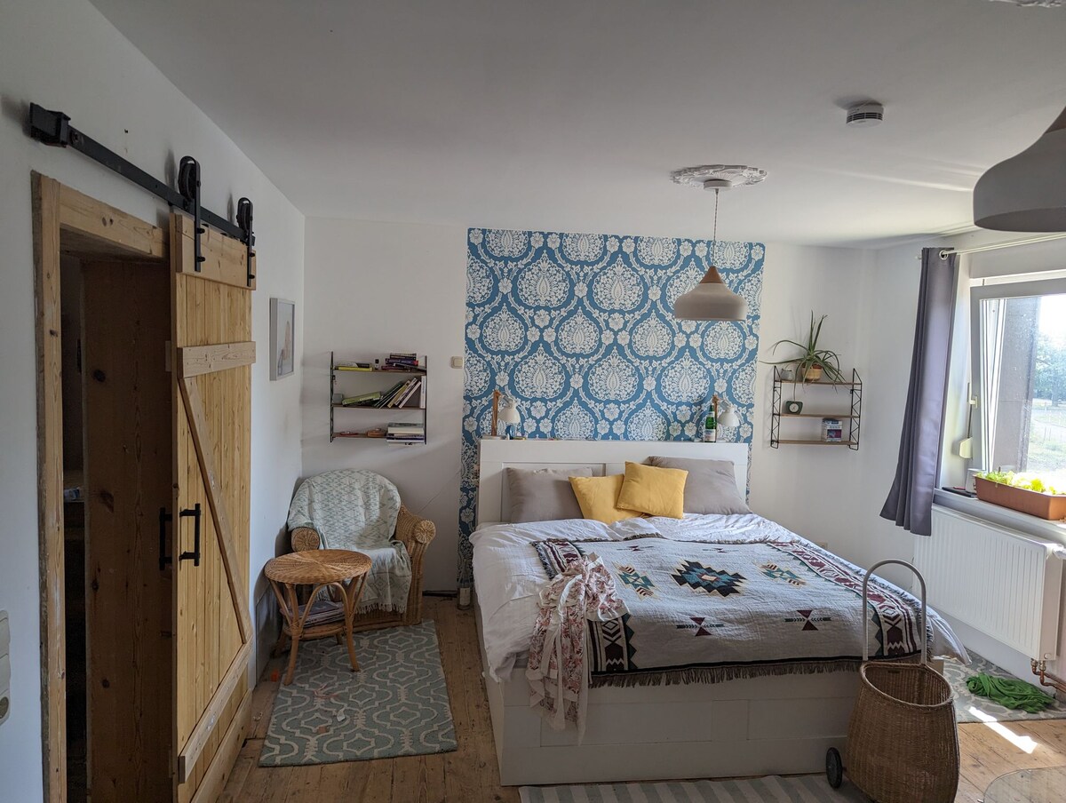 Te doy la bienvenida de todo corazón a la antigua fábrica de chocolate. La instalación nuclear anunciada y restaurada con amor en 2005, está situada en South Gohlis: Gohliser entre el castillo y la Casa Schiller (aquí, Schiller escribió su "Oda a la alegría"), a 2 minutos del parque, "Rosenthal". Hasta que el famoso zoológico de Leipzig esté a 15 minutos a pie. "Lo feliz que estoy yo en Gohlis s", y él debería estar hasta hoy: La situación está hecha para cualquier gusto: quieres correr por la mañana, a 2 minutos del Rosenthal, a un paseo que quieres encontrar el parque a poca distancia a pie, puedes admirar el Zooschaufenster las jirafas. Para un amplio zoológico, un sendero es calcular 15 minutos. En la ciudad para hacer turismo o ir de compras, estás a unos 5 minutos en auto. También recomendamos el uso del tranvía, a unos 2 minutos del departamento. Puedes llegar a una ruta relajada a través del distrito de carreteras forestales, el centro de la ciudad y explorar el resto de la ciudad. El departamento es un generoso departamento de Loftwohnung/1-Zimmer-Apartamento Cuenta con una cocina abierta (que incluye horno, estufa, nevera, lavadora) con asiento en la barra para 2 personas, sofá, una cama cómoda (2 x 1,60m) y un elegante baño (con bañera). El balcón de 15 metros cuadrados está listo para un desayuno soleado. ¡Agradezco tu consulta y espero que ya seas una estancia increíble!