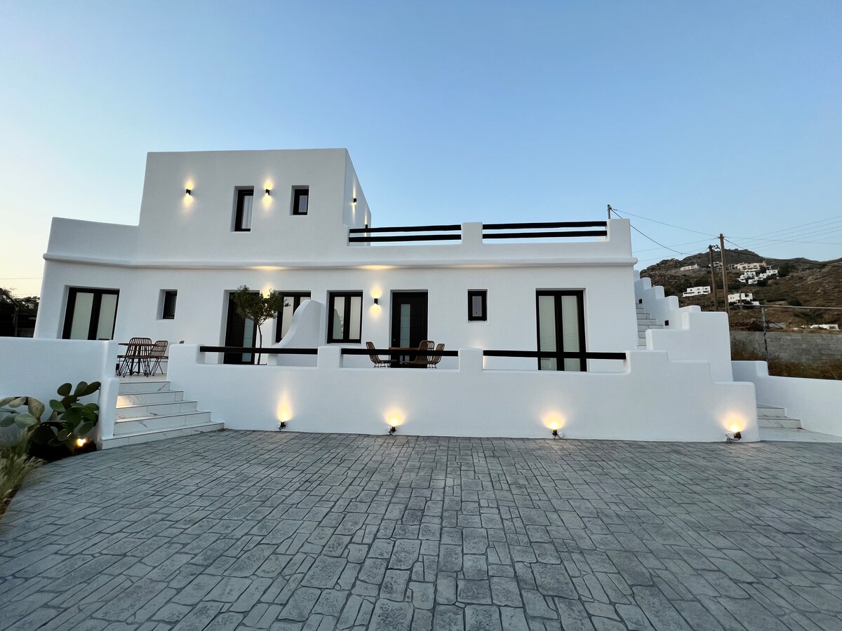 Moderna casa de diseño cicládico y cómoda con increíble luz y vistas espectaculares ubicada en un entorno privilegiado con un dormitorio y una gran terraza. La casa está a 2 km de la ciudad de Naxos en la colina, con vistas impresionantes a la bahía de Naxos. ¡Esta acogedora casa te ofrece todo para tus vacaciones! La casa está construida sobre una enorme roca y tienes jardín, una terraza muy grande con parrilla, pérgolas, sofás construidos y tu propia minipiscina. ¡Recomendado por Conde Nast Traveller!