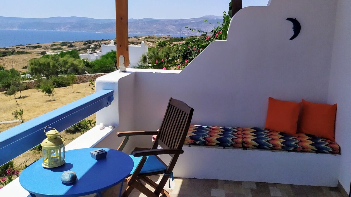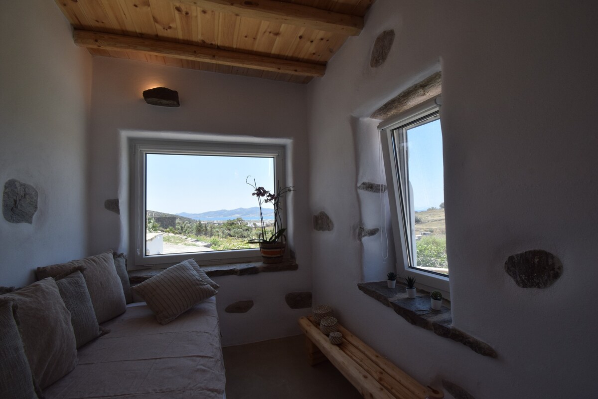 Una villa privada con vistas panorámicas al mar y al atardecer, y a la ciudad de Parikia. La casa ofrece total privacidad y comodidad, ha sido recientemente reformada y está totalmente equipada. Rodeado de jardín y terrazas y un encantador porche con zonas de comedor/salón, para que puedas disfrutar de la vida al aire libre. Situado en una hermosa ubicación en una colina a 1 km del centro de Parikia. 2 dormitorios, cocina, comedor, salón, área de trabajo de oficina. Seguro para los niños. * Oferta especial para septiembre, octubre, noviembre - ¡contáctenos!