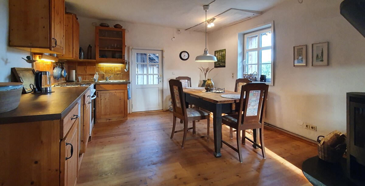Encantador y espacioso apartamento en una casa antigua con mucho amor por los detalles. Dos pisos, entrada independiente, chimenea, terraza con parrilla, amplia sala de estar y tres dormitorios con un total de 6 camas. En el jardín hay un brasero disponible y se puede compartir, ocasionalmente los gatos visitan la zona. Perfecta para familias o amantes de la naturaleza. El apartamento está ubicado en una calle. Por lo tanto, el ruido de la calle se puede escuchar con la ventana abierta.