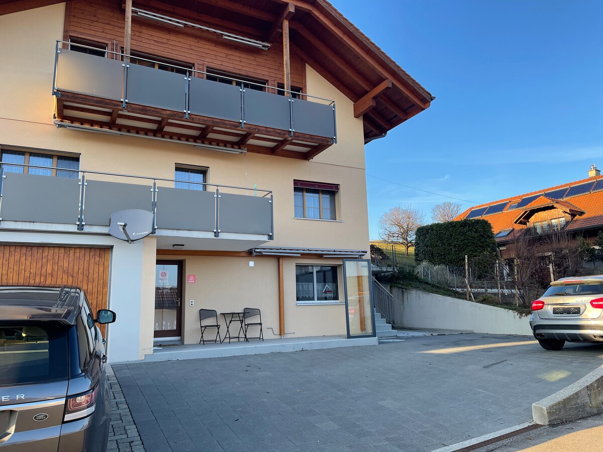 Bienvenidos a nuestro acogedor y bien equipado alojamiento en una zona tranquila cerca de Fribourg. Nuestra casa ofrece el punto de partida perfecto para excursiones a las tierras altas de Fribourg y las ciudades cercanas. A solo 20 minutos del centro de Friburgo, desde aquí puedes explorar la ciudad de manera rápida y sencilla. Al mismo tiempo, estarás rodeado de hermosas zonas recreativas que te invitan a relajarte y disfrutar de la naturaleza.