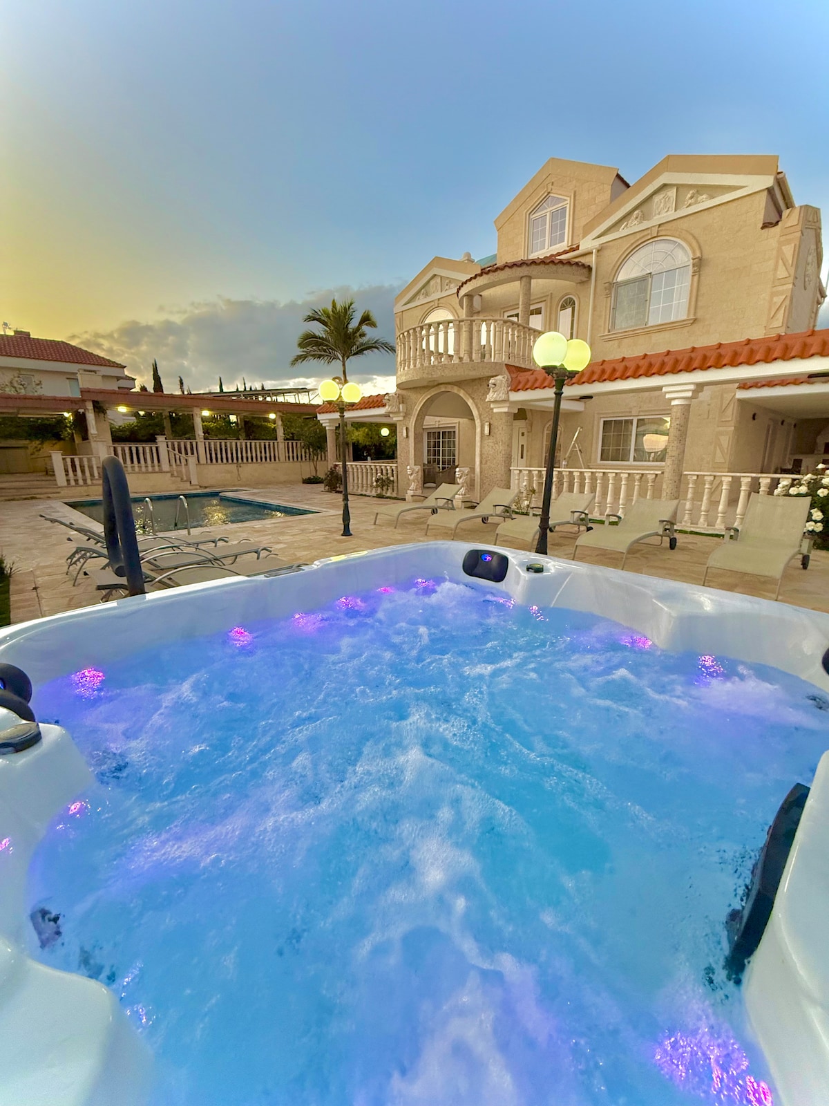 Bienvenido a tu mejor escapada en Ayia Napa, Chipre: una lujosa villa que promete una estancia inolvidable. Esta impresionante propiedad cuenta con cinco dormitorios dobles, cada uno con su propio baño privado, además de un baño individual, lo que ofrece una comodidad y privacidad inigualables para todos los huéspedes. Ubicada dentro de un complejo cerrado con piscina infinita privada y jacuzzi, la villa garantiza seguridad y exclusividad, lo que la convierte en el refugio perfecto para familias y grupos.