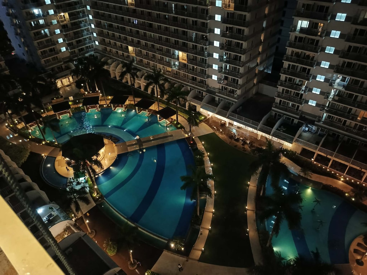 Aprovecha un condominio de ambiente hotelero de bajo costo y cómodas vacaciones con dos camas dobles y comodidades increíbles. Un condominio bien equipado con piscinas increíbles y relajantes, un restaurante delicioso y fácil acceso a actividades recreativas, tiendas minoristas e importantes centros de negocios. Uno de los centros comerciales más grandes de Filipinas, SM MOA, junto con SMX e IKEA, está a pocos pasos. Aeropuerto Naia, Okada, Solaire, BACALAO, PICC, WTC y la bahía de Manila son accesibles cerca.