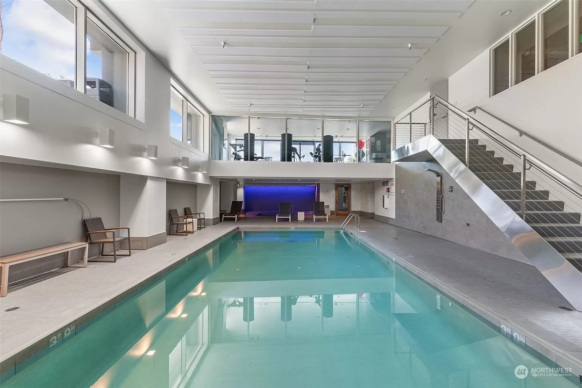 Apartamento en Seattle con cama tamaño king, estacionamiento gratuito, piscina, a pasos de Pike Place