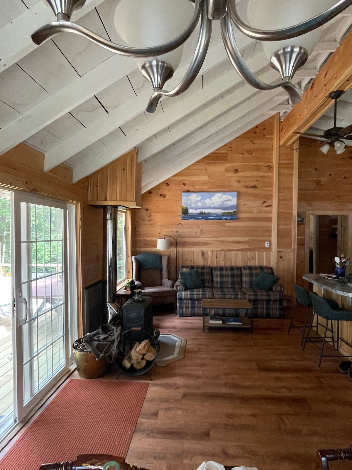 Te damos la bienvenida a nuestro relajante y rústico refugio frente al hermoso lago Sebec. Esta propiedad cuenta con 4 dormitorios: 3 en la casa principal y un loft privado sobre el garaje independiente. La casa principal tiene capacidad para 8 personas, con camas tamaño matrimonial y un sofá cama, además de 2,5 baños. El loft tiene más de 28 metros cuadrados y cuenta con una cama tamaño queen, un sofá cama individual, una cama nido (con capacidad para 4 personas) y aire acondicionado; no tiene baño. Capacidad total: 12 huéspedes.