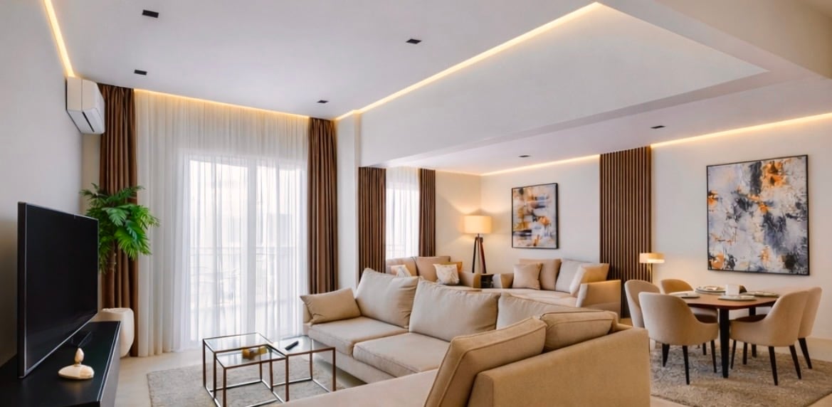 Este espacioso apartamento está totalmente amueblado y equipado con todo lo necesario para una estancia cómoda. Relájate y ve tus películas y programas de televisión favoritos en el sistema de sonido con acceso a Netflix, beIN Sports, Shahid, Watch it y Starzplay. Ubicado en una ubicación céntrica, cerca de todas las principales atracciones. A poca distancia a pie de la estación de autobuses, las tiendas y los restaurantes. Tanto si viajas por negocios como por placer, este moderno y elegante apartamento es el alojamiento perfecto.