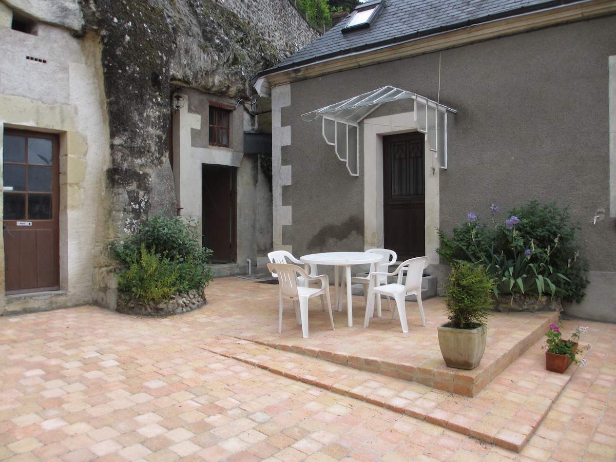 🌿 Experiencia troglodita auténtica y no estandarizada ☀️ Confort esencial, espíritu natural, jardines en terraza y vistas al Loira (a 4 km de Amboise) 🏡 Estudio excavado en la roca con patio privado 🚻 Baño separado con calefacción + nevera y lavadora en el sótano contiguo (3 escalones) 🌞 Anexos trogloditas ~200 m² (toba, sin calefacción, sin cama) — salón de verano e inserto (1ʳᵉ flambée ofrecida, participación madera a continuación) 📅 Estancia mínima: 2 noches
