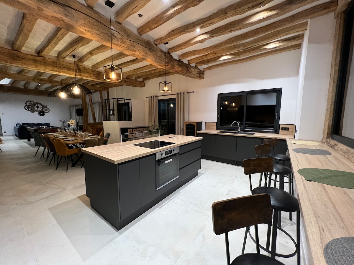 Situado en el valle del Andelle, en el corazón del país de Flaubert, este granero totalmente renovado ofrece una vista abierta de la campiña de los alrededores, tranquila. 5 habitaciones independientes, cada una con su baño y su inodoro cerrado, una de ellas en la planta baja, accesible para personas con movilidad reducida. Espacio habitable completamente abierto que ofrece piano, billar y futbolín. Gran terraza de madera con baño nórdico (climatizado todo el año) y plancha Terreno de petanca