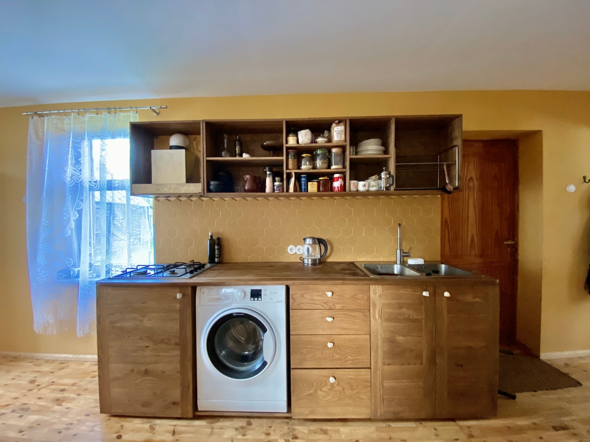 A solo 7 minutos en auto de Daugavpils, la acogedora casa de campo de 1 dormitorio y 1 sofá ofrece un refugio para hasta 3 personas. Ubicada en un pequeño pueblo de vacaciones, esta casa incluye un sofá cama, una sauna y un patio. Es un lugar ideal para aquellos que quieren disfrutar de la naturaleza mientras están cerca de la ciudad. El patio cuenta con una zona de barbacoa y estacionamiento, se admiten mascotas. Propiedad dividida en 2 casas. Nuestra familia vive en la casa vecina. Todas las mañanas se puede disfrutar de un desayuno preparado por la madre.