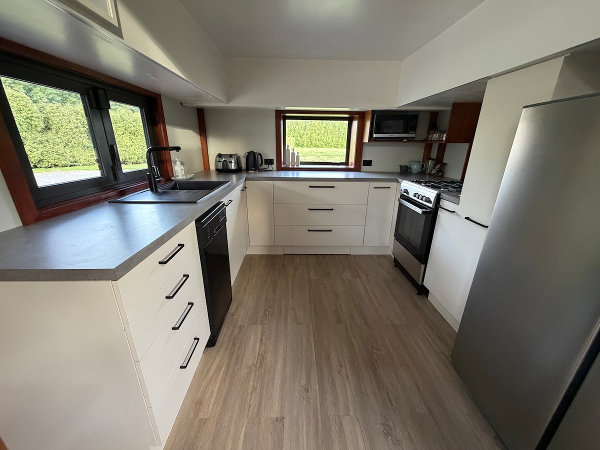 Ubicado entre los nogales es un espacio moderno y privado en el campo, pero muy cerca de la ciudad. A 15 minutos del aeropuerto de Christchurch. Este es un bloque de estilo de vida que funciona como una pequeña granja. Da un paseo y disfruta del campo. ¡Un fácil viaje en auto a los supermercados y a cada comida para llevar que se te ocurra! Relájate en la terraza cubierta y absorbe el espacio. No es apto para bebés/niños.