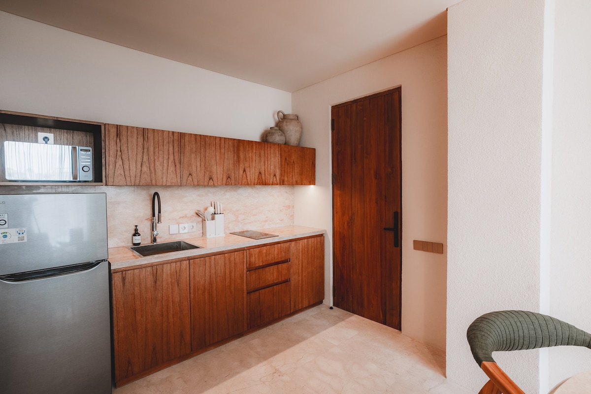 Un nuevo estudio contemporáneo de minimalismo tropical, que ofrece una mezcla armoniosa de diseño moderno y texturas naturales cálidas. El espacio está diseñado para complementar el estilo de vida sofisticado de Canggu, pero cómodo sin esfuerzo. Situado en el lugar más conveniente, estarás a pocos minutos de playas, cafés de moda, restaurantes y clubes de playa, mientras disfrutas de un entorno tranquilo de estudio. Es el equilibrio perfecto entre accesibilidad y comodidad tranquila justo en el corazón del estilo de vida de Canggu.