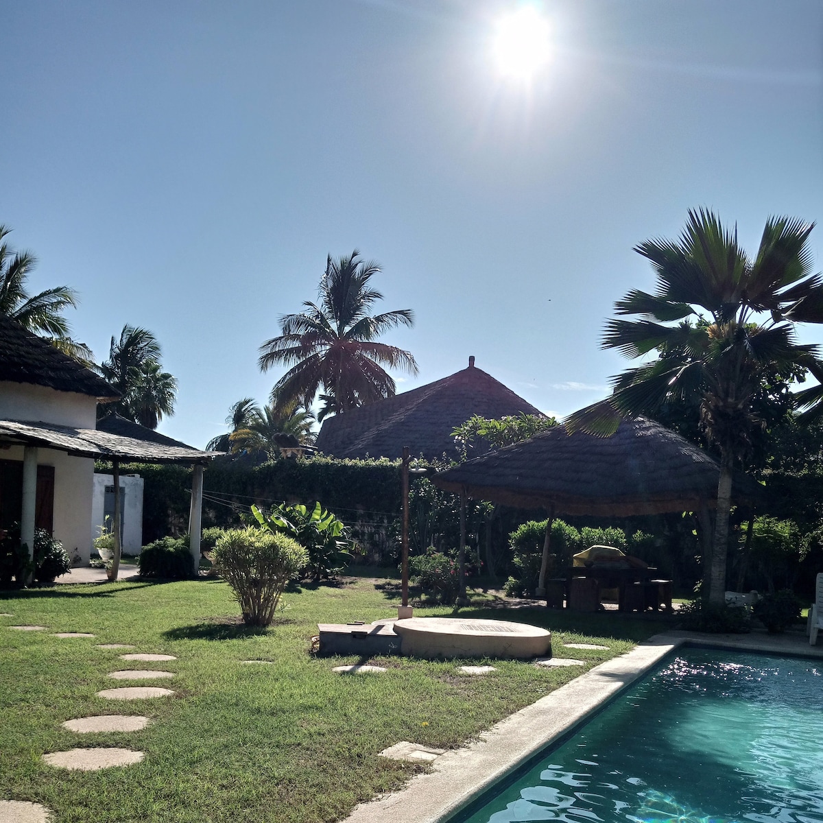 Un pequeño pedazo de paraíso lejos del estrés de la ciudad. Dos bungalows equipados y cómodos en la sabana y las colinas de Toubab Dialaw; un lugar ideal para el descanso y la contemplación. Maravillosa puesta de sol en nuestra colina, al pie del baobab, desde donde se pueden ver los monos en libertad. Despertado por la mañana con el canto de los pájaros. Laye, nuestro vecino, podría proporcionarle verduras orgánicas de su huerto y llevarle a dar un paseo a caballo o en carreta.